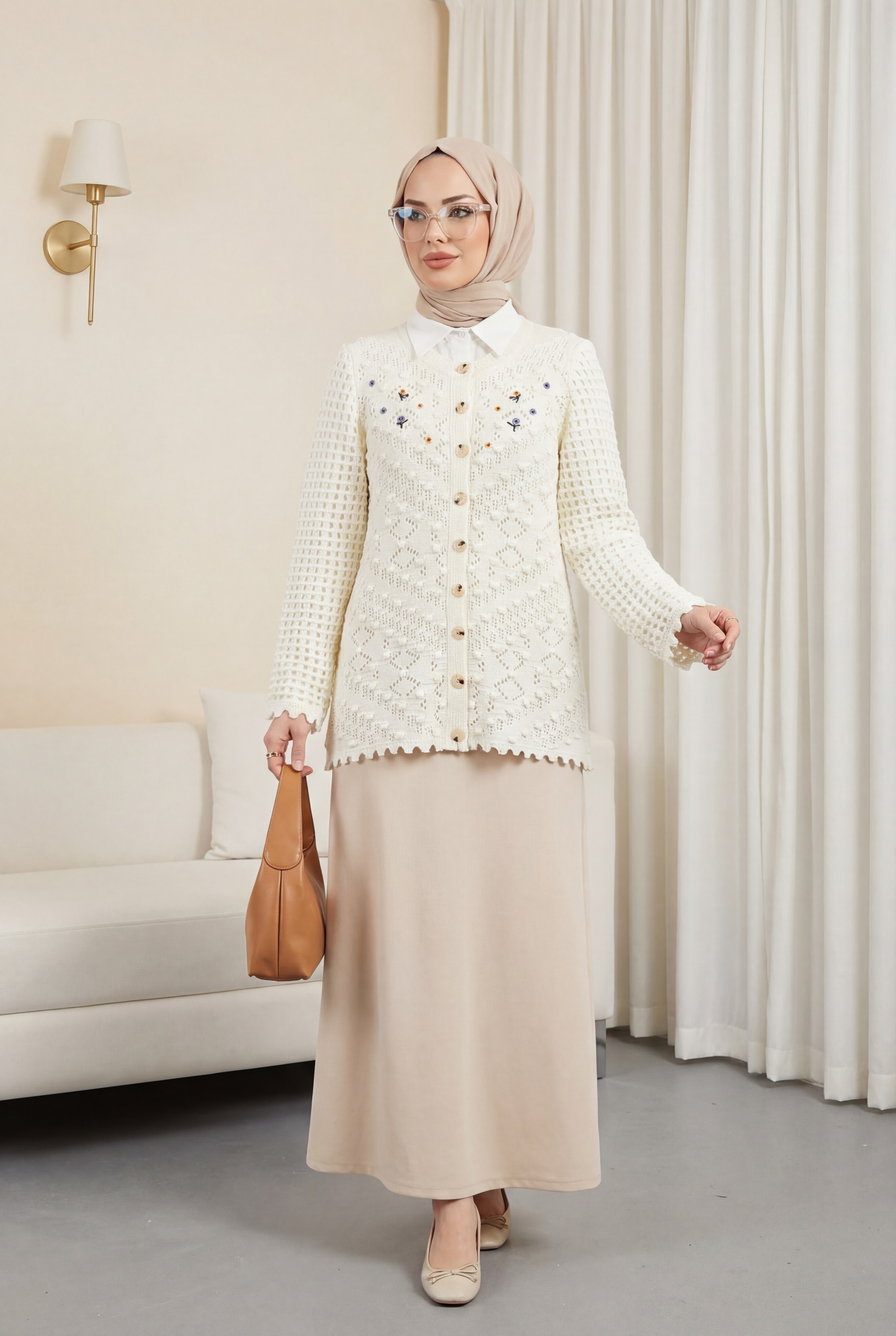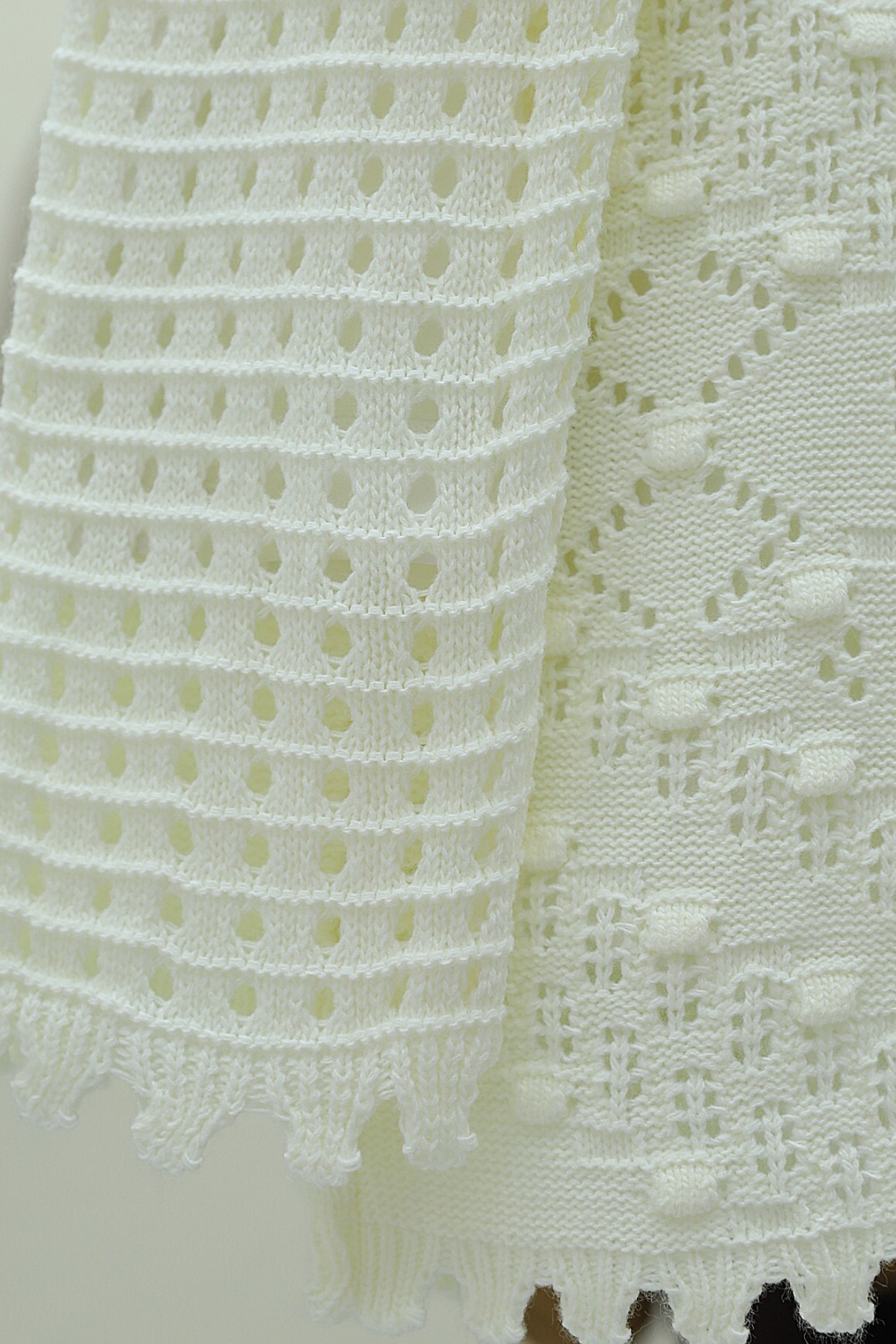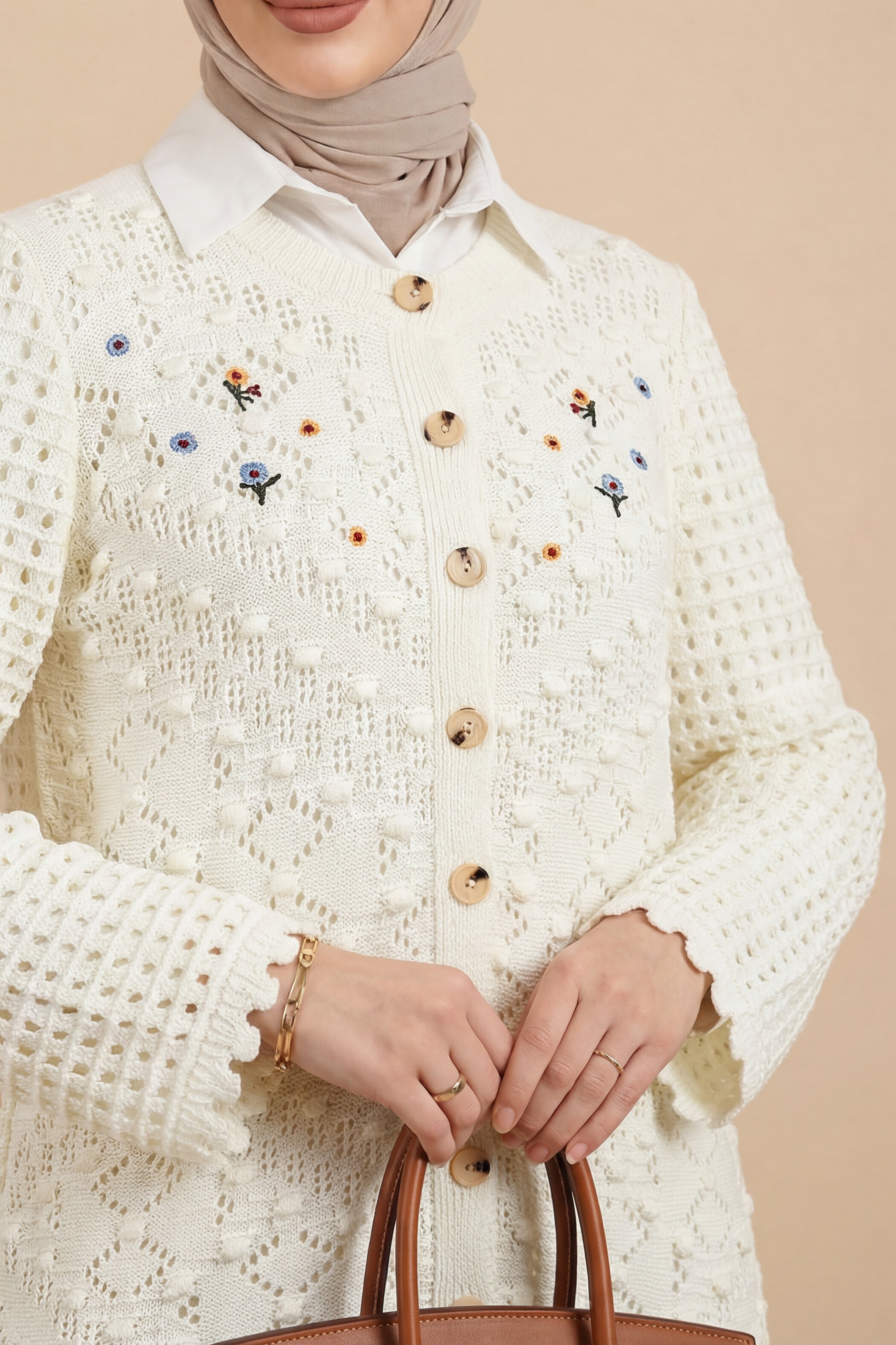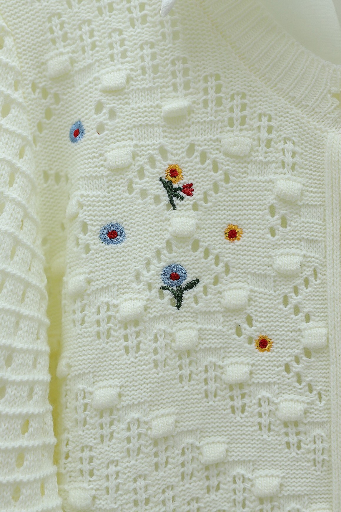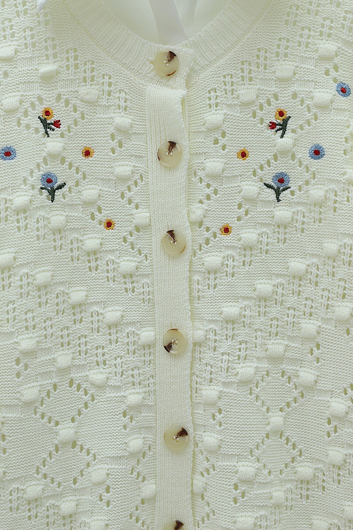 Pompom Round Neck Buttoned Knitwear Cardigan -Ecru