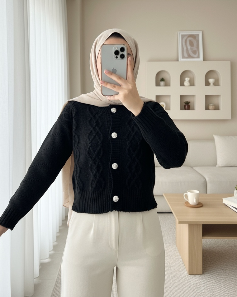 Depending on the user and region, this product can also be called a comfortable knitwear cardigan, hijab knitwear cardigan, daily knitwear cardigan, seasonal knitwear cardigan, winter knitwear cardigan, knitwear cardigan models, knitwear cardigan, openwork cardigan.