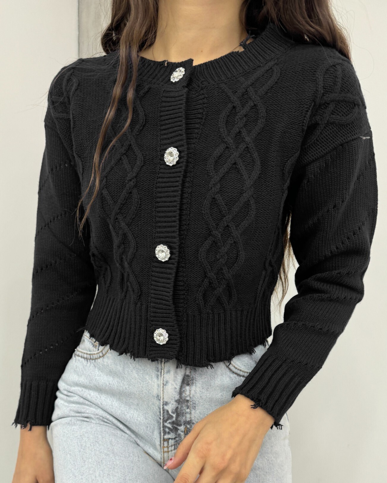 Our front buttoned, openwork, torn pattern knit cardigan model is among the most popular models of the new season.