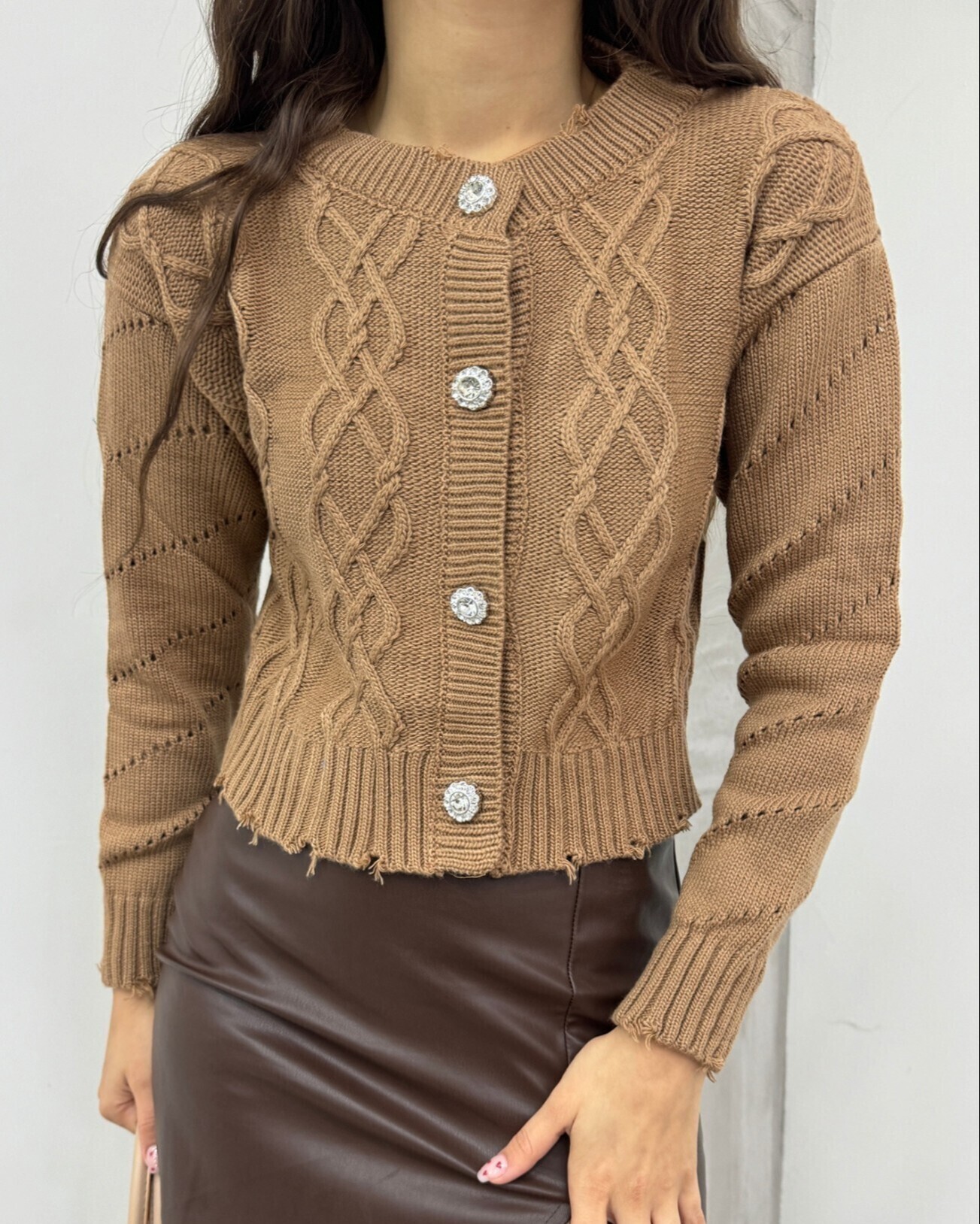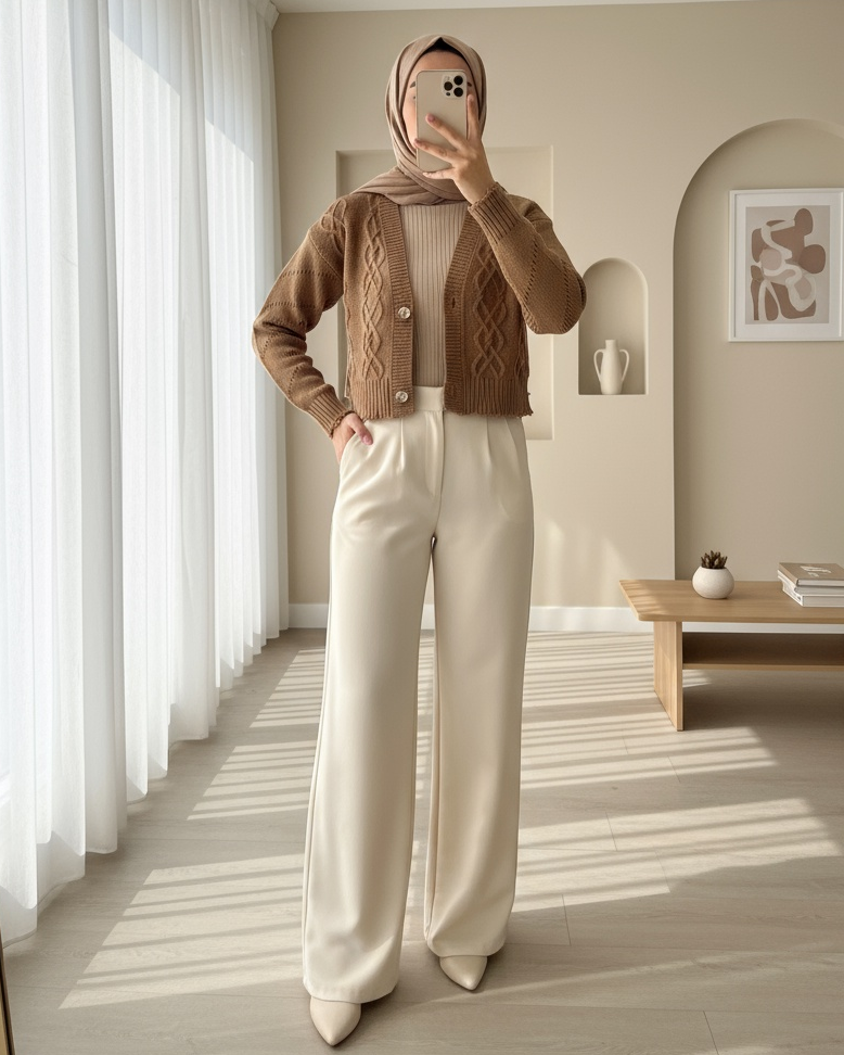 Note: The product content consists of a cardigan. (Sweaters, trousers, shoes, bags and jewelry are used for decoration purposes.)