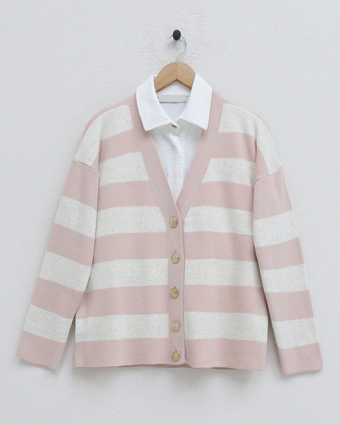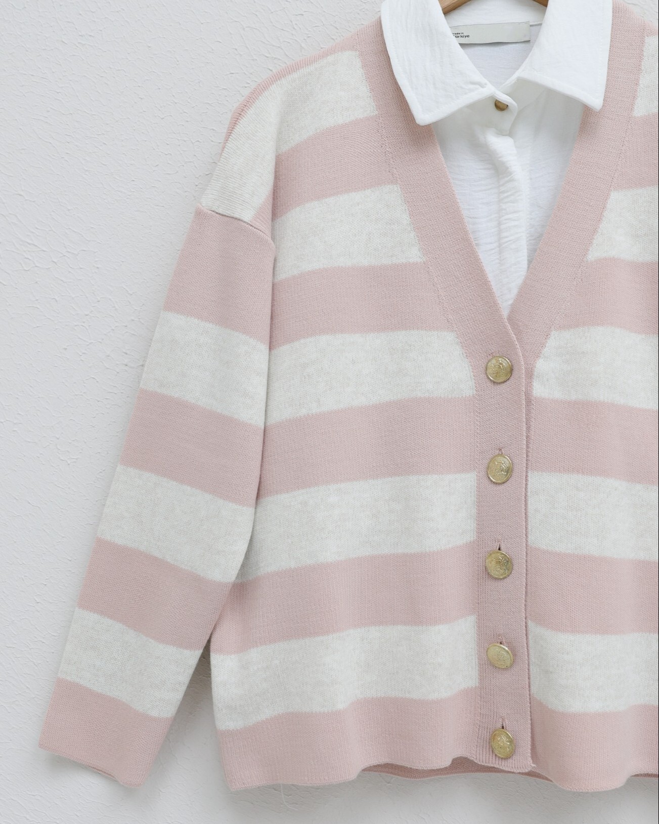 Our front button, striped knit cardigan model is among the most popular models of the new season.