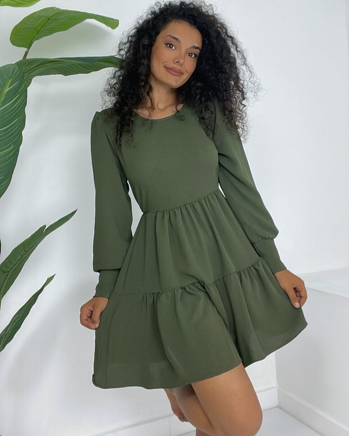 Our round neck, frilly skirt, elastic waist, unlined dress model is among the most popular models of the new season.