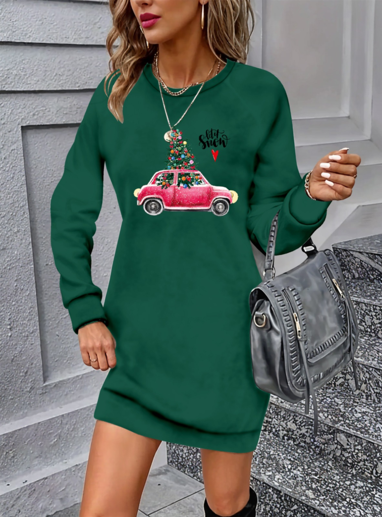Women's Long Sleeve Crew Neck Patterned Viscose Two Yarn Dress