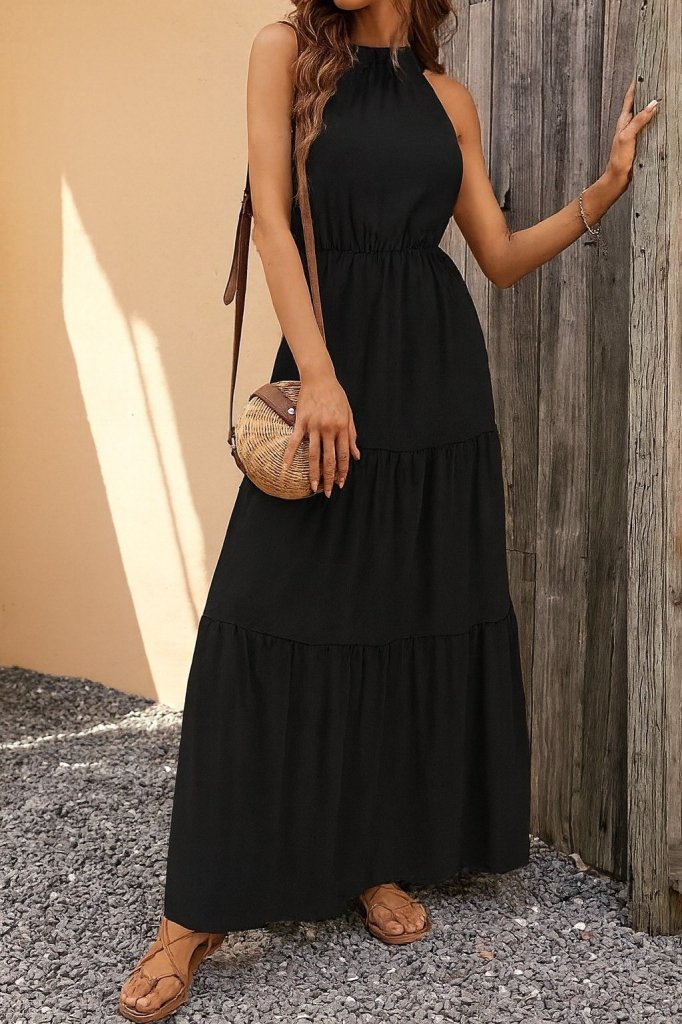 Women's Sleeveless Halter Neck Elastic Waist Patterned Micro Dress