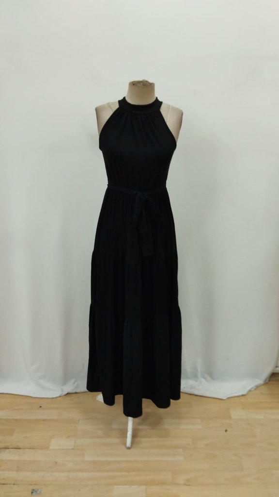 Women's Sleeveless Halter Neck Elastic Waist Patterned Micro Dress Stock Code: 186537