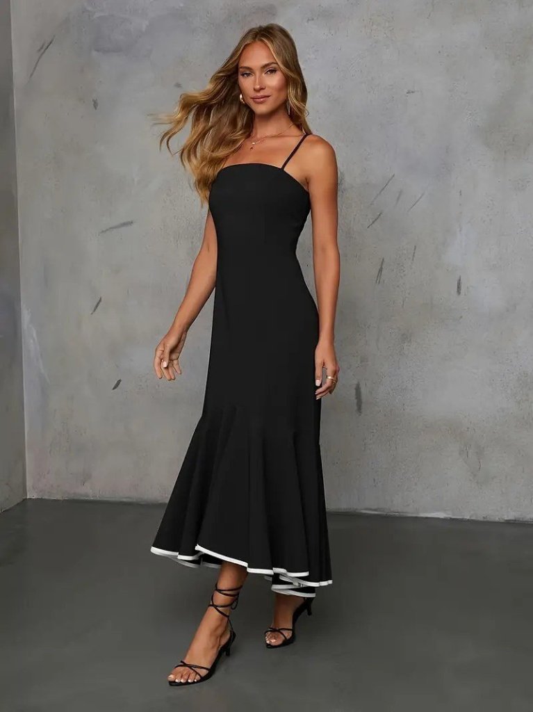 Women's Strappy Strapless Maxi Length Shimmering Crepe Dress