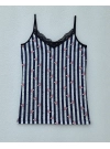 Lace Patterned Undershirt with Rope Straps -Black