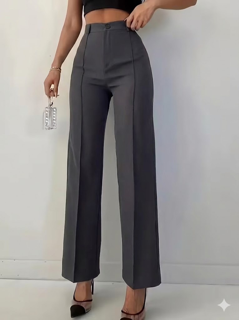 High Waist Trousers with Pocket Detail -Black