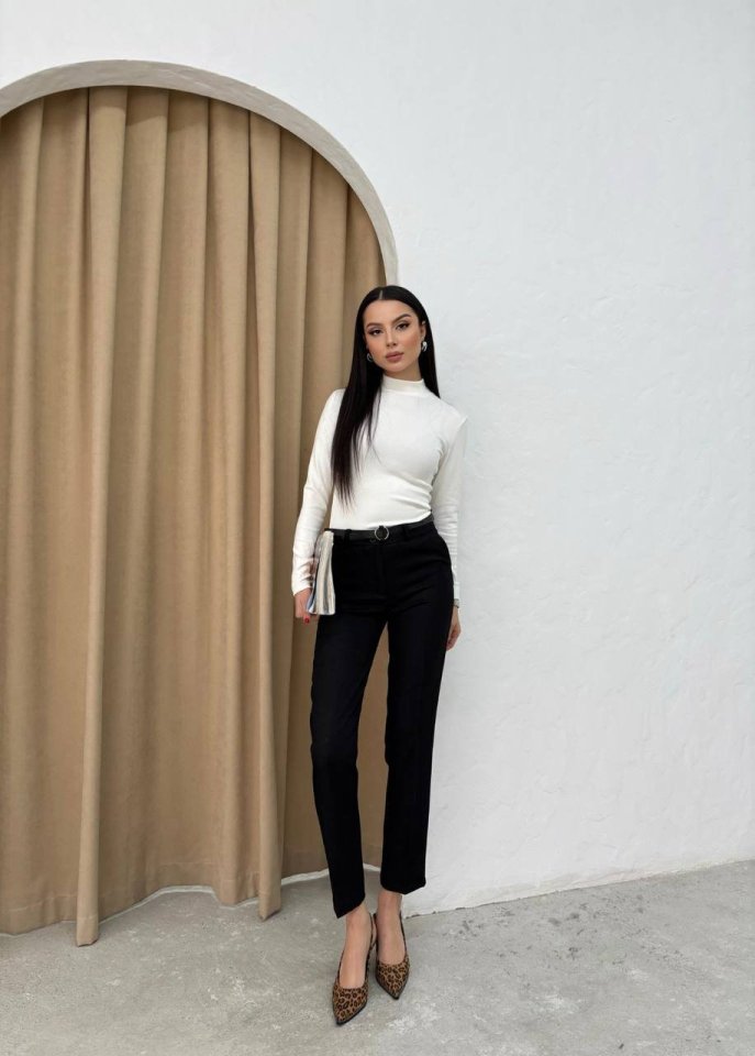 Women's High Waist Slim Fit Fabric Trousers with Belt Included Stock Code: 137010