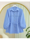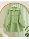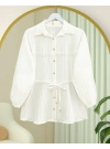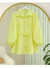 Stoned Buttoned Waist Tied Lace Detailed Shirt -Yellow