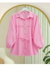 Pearl Button Striped Brooch Shirt -Pink