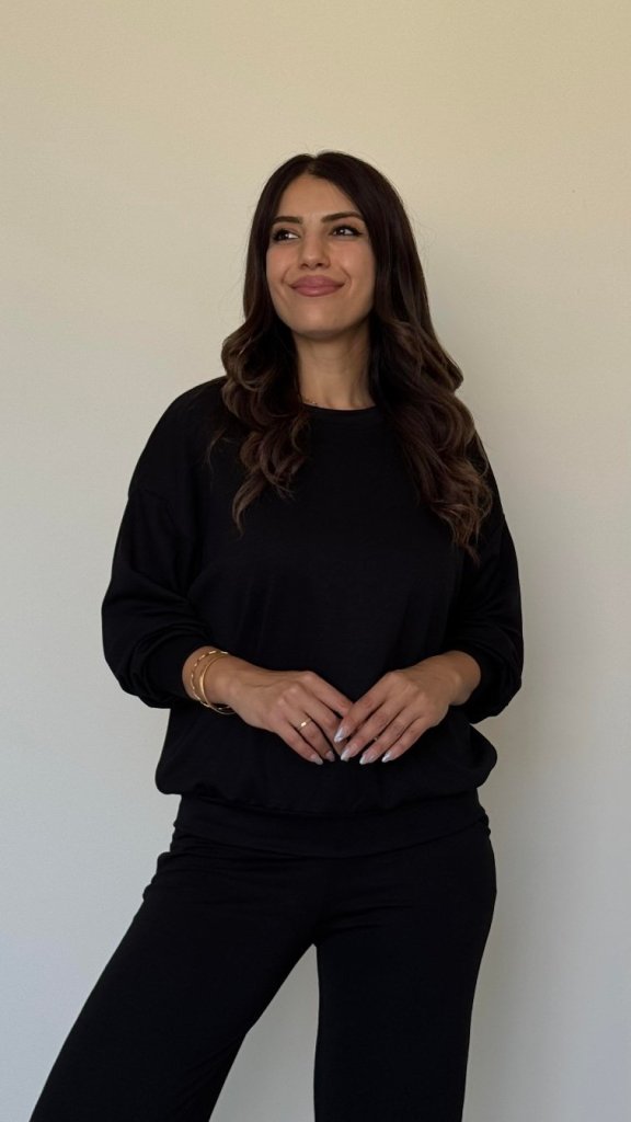 Women's Long-Sleeve Crew Neck Viscose Two-Thread Blouse and Pants Two-Piece Set Stock Code: 179589