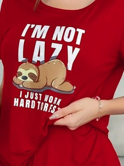 Women's Short-Sleeved Crew Neck Printed Viscose Blouse and Shorts Two-Piece Set