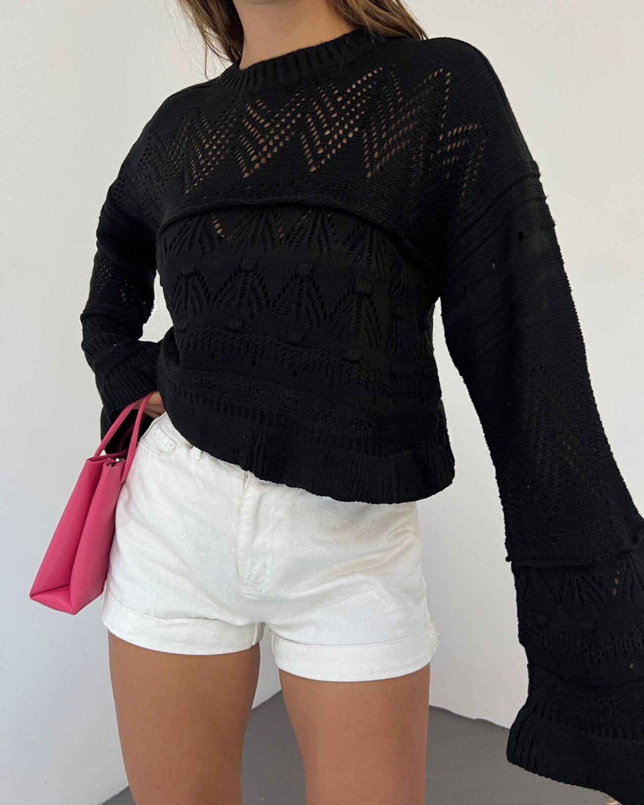 Note: The product content consists of a sweater. (Blouses, trousers, shoes, bags and jewelry are used for decoration purposes.)