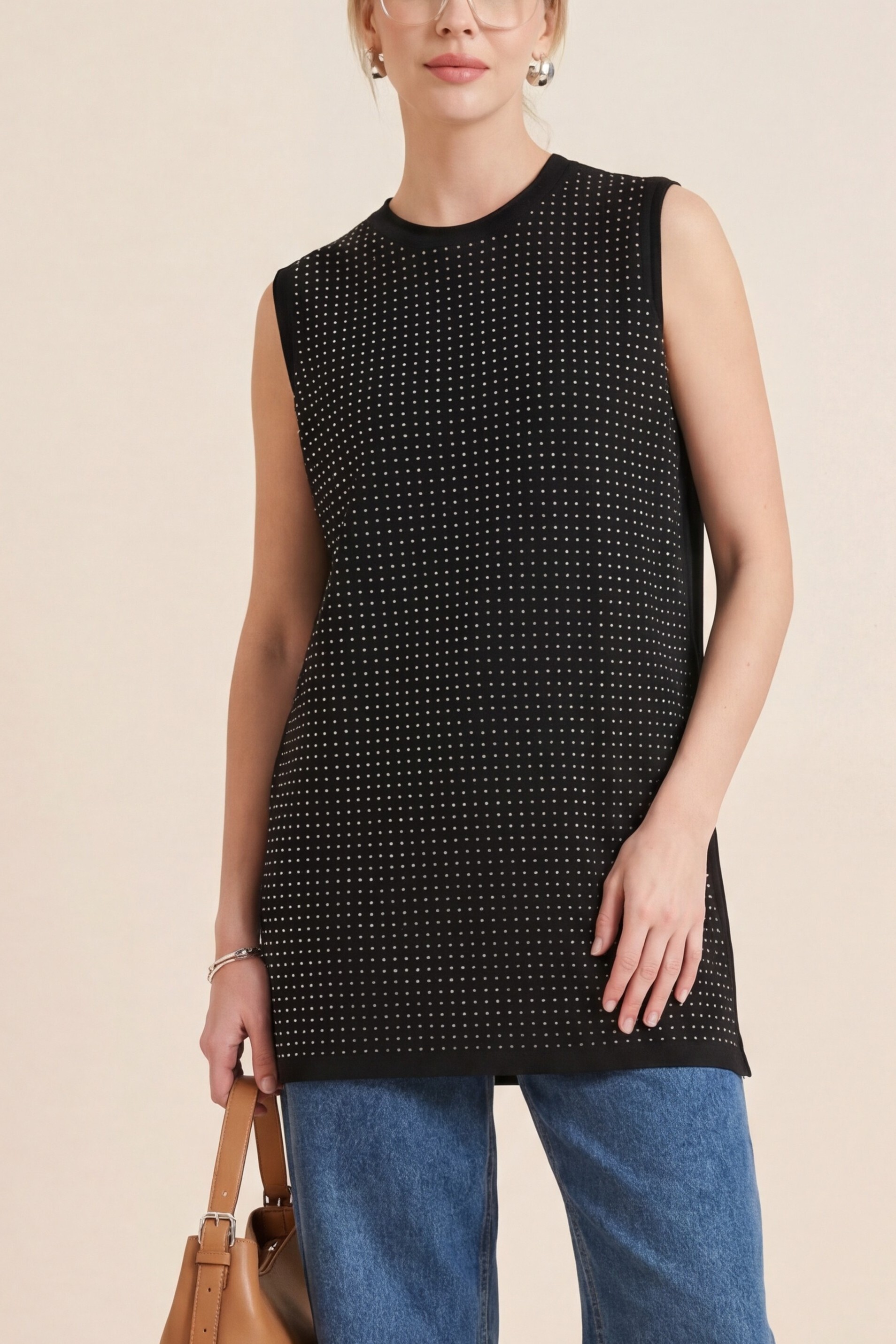 Işıltılı ve zarif tasarımıyla öne çıkan Önü Taş Detaylı Sıfır Kol İçlik, sade kombinlere şık bir dokunuş katmak isteyenler için ideal bir seçim! Ön kısmındaki taş detayları ürüne sofistike ve dikkat çekici bir hava kazandırırken, sıfır kol tasarımı katmanlı kombinlerde rahat kullanım imkânı sunar. Yumuşak ve esnek kumaş yapısı sayesinde gün boyu konfor sağlar. Ceket, kimono ve gömleklerin içinde tamamlayıcı parça olarak kullanılabileceği gibi tek başına da şık bir görünüm oluşturur. Vücuda oturan fakat sıkmayan ideal kalıbı ile dengeli ve estetik bir siluet sunar.