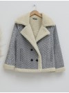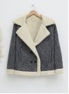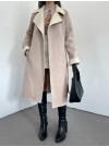 Çift Cepli Önü Düğmeli Astarlı Buklet Kaban -Bej
