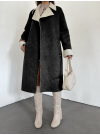 İçi Kürklü Kemerli Süet Kaban -Siyah