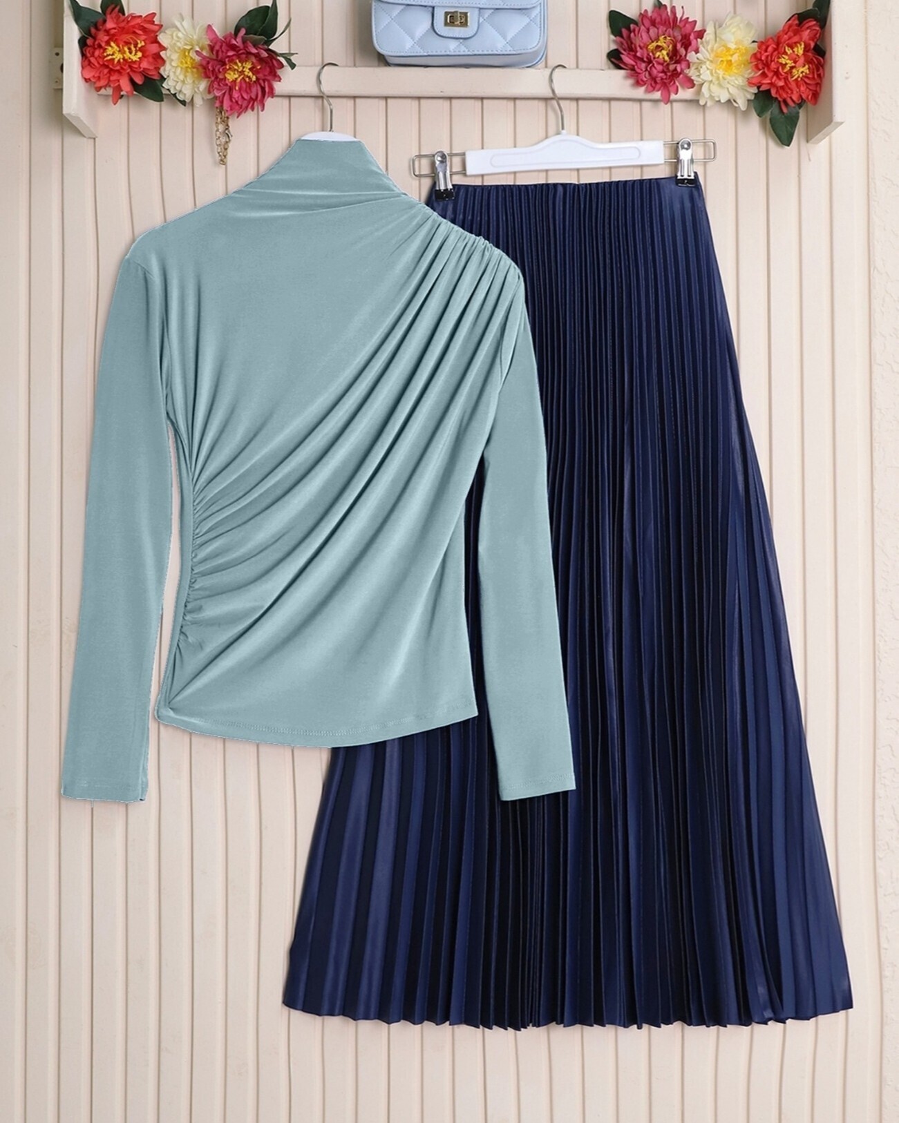 Not: Ürün içeriği bluzdan oluşmaktadır. (Gömlek, ayakkabı, çanta ve takılar dekor amaçlı kullanılmaktadır.)