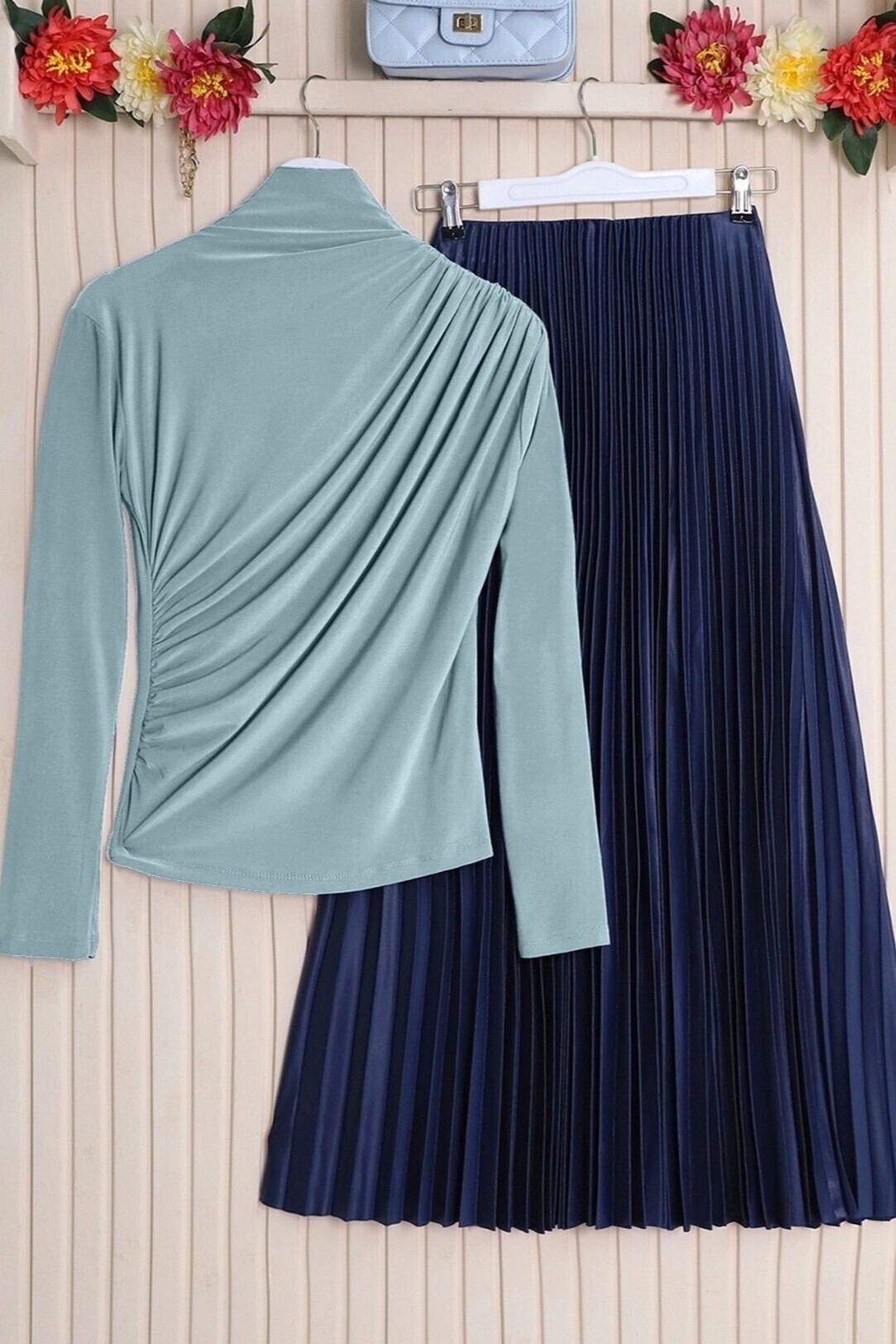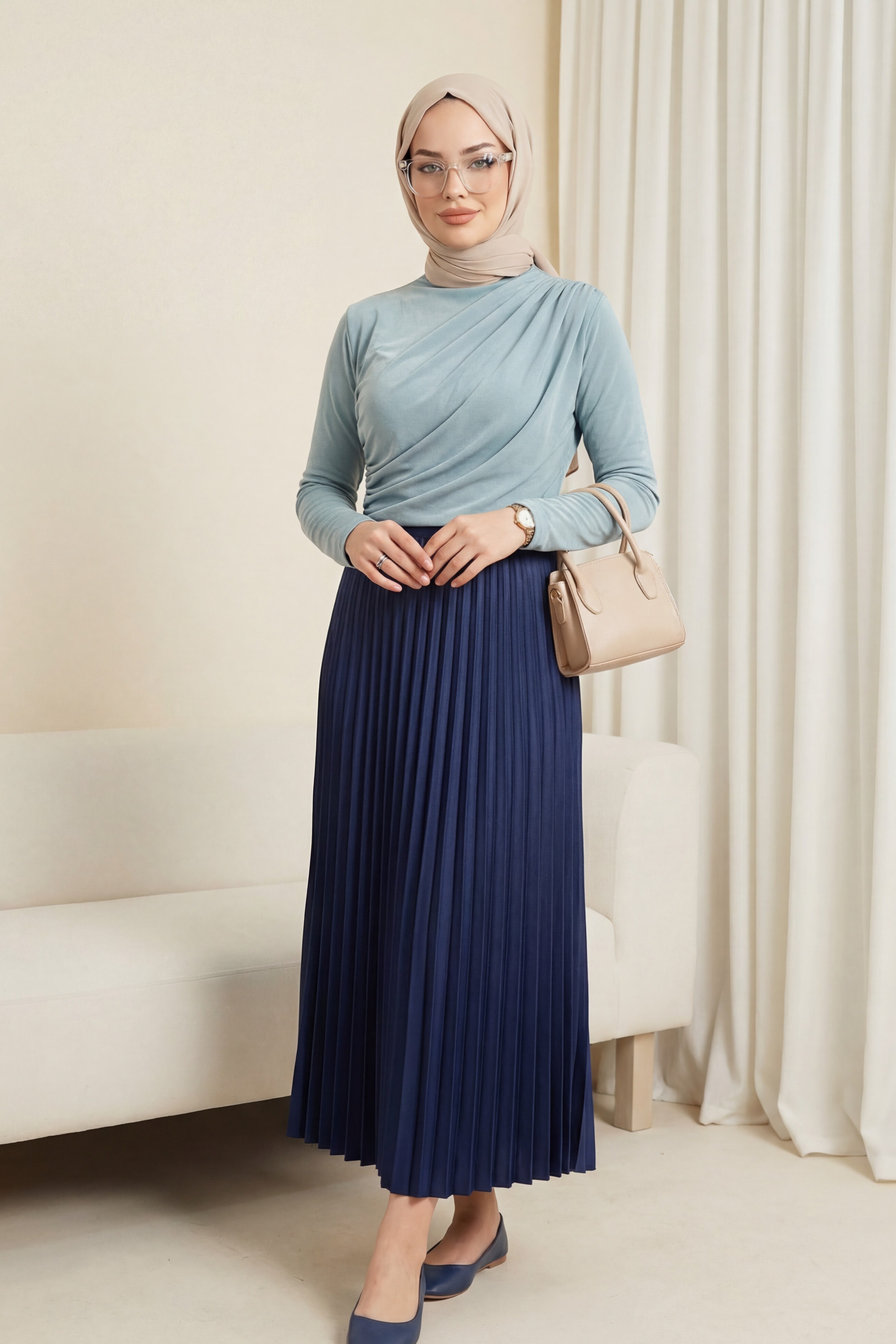 Boğazlı, önü drapeli bluz modelimiz yeni sezonun en çok sevilen modelleri arasında yer almaktadır.
