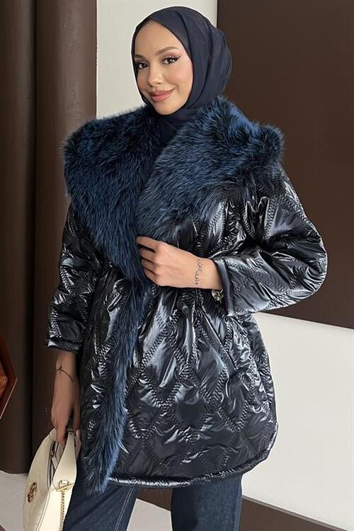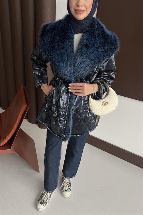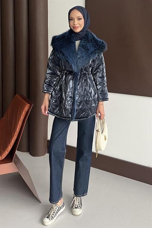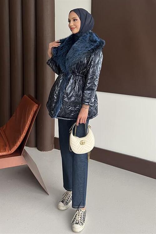 Kürk Yakalı Mont Lacivert