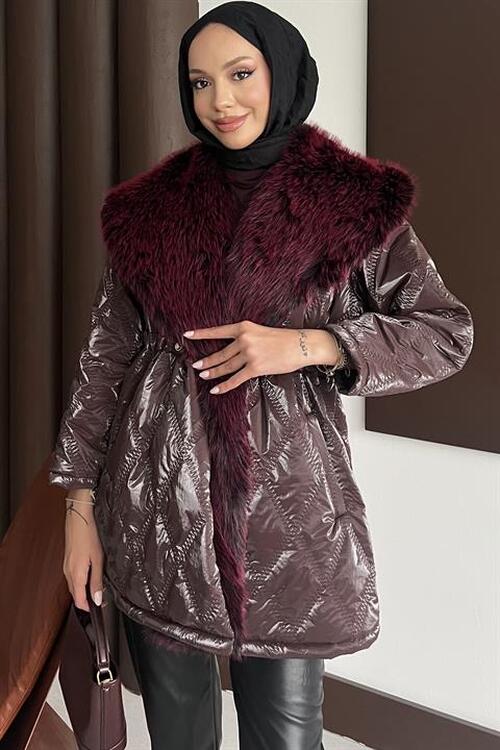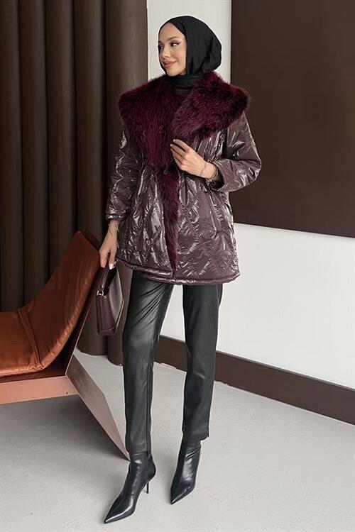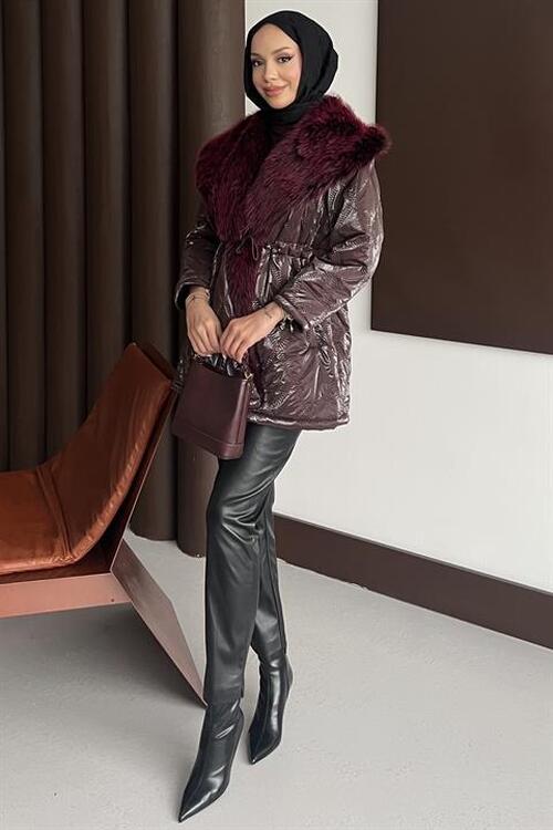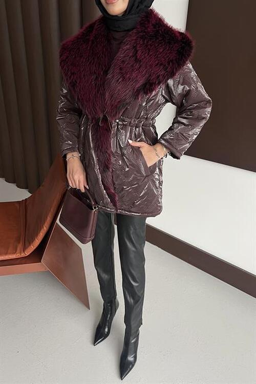 Kürk Yakalı Mont Mürdüm