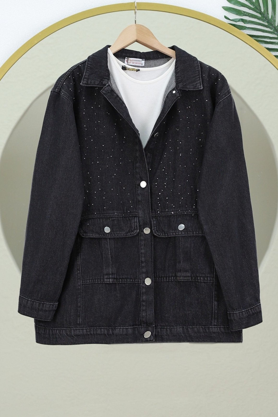 Serpme taş detaylı kapaklı cepli kot ceket, zarafeti ve fonksiyonelliği bir araya getiren şık bir tasarıma sahiptir. Özel taş detaylarıyla dikkat çekerken, kapaklı cepleriyle de pratik kullanım sunar. Her mevsim rahatlıkla giyilebilecek bu ceket, hem günlük kombinlere hem de şık davetlere mükemmel uyum sağlar.