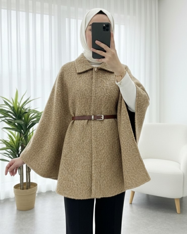 Tek düğmeli, beli kemerli sakallı panço, şıklığı ve rahatlığı bir arada sunar. Sakallı dokusu, pançoya benzersiz bir doku ve hareket katarken, tek düğmeli tasarımı zarif bir görünüm sağlar. Ayarlanabilir kemeriyle belinizi vurgular, her kombine kolayca uyum sağlar. Soğuk havalarda stilinizi tamamlayan hem şık hem de fonksiyonel bir parça.