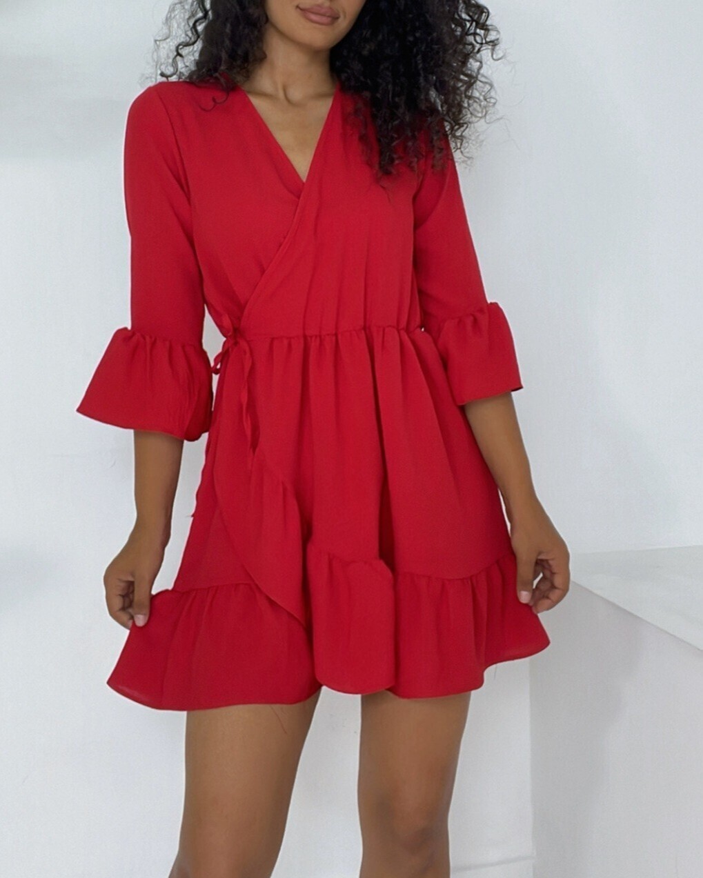 Eteği Ve Kolları Fırfırlı Beli Lastikli Ayrobin Elbise -Kırmızı
