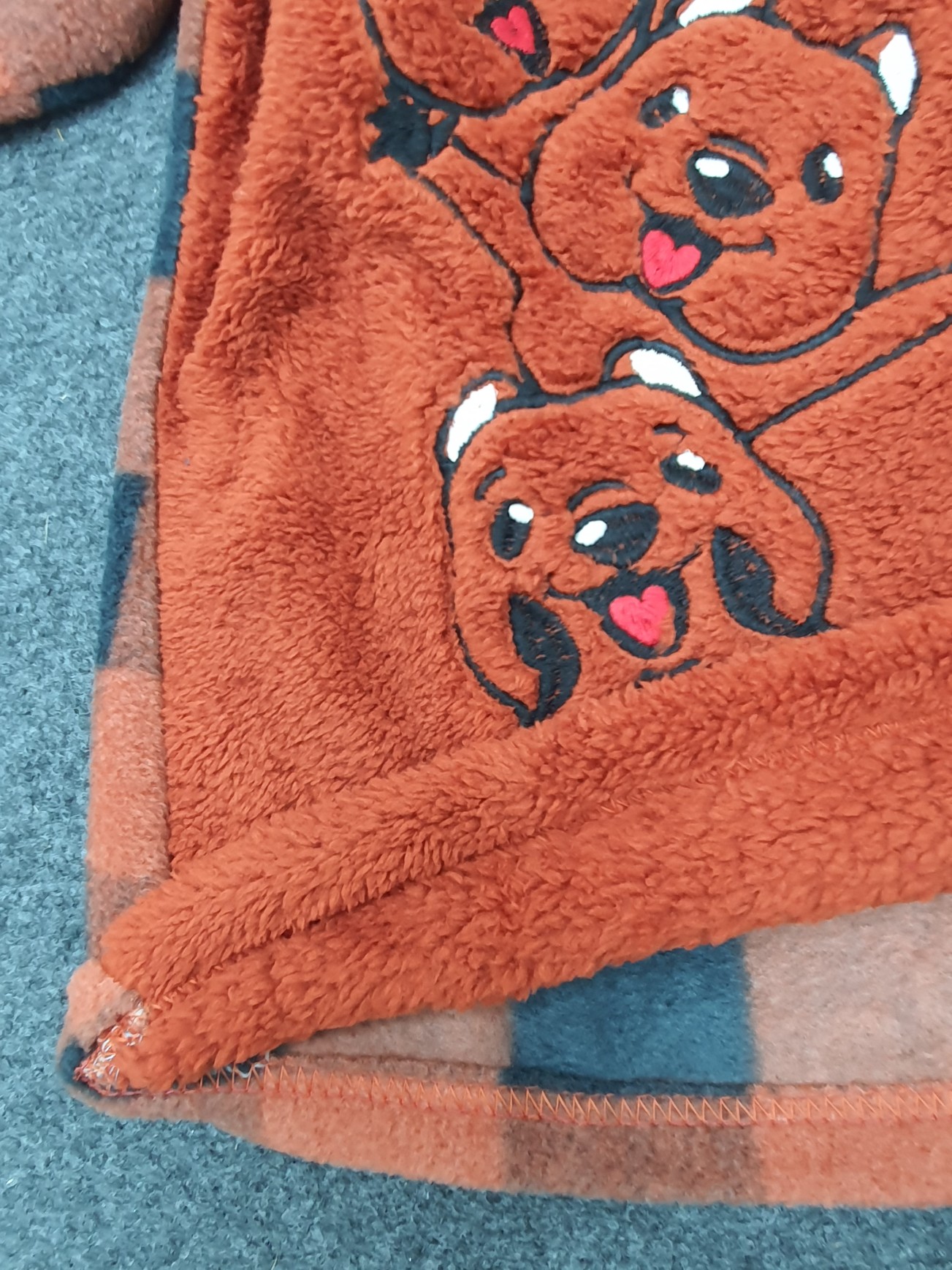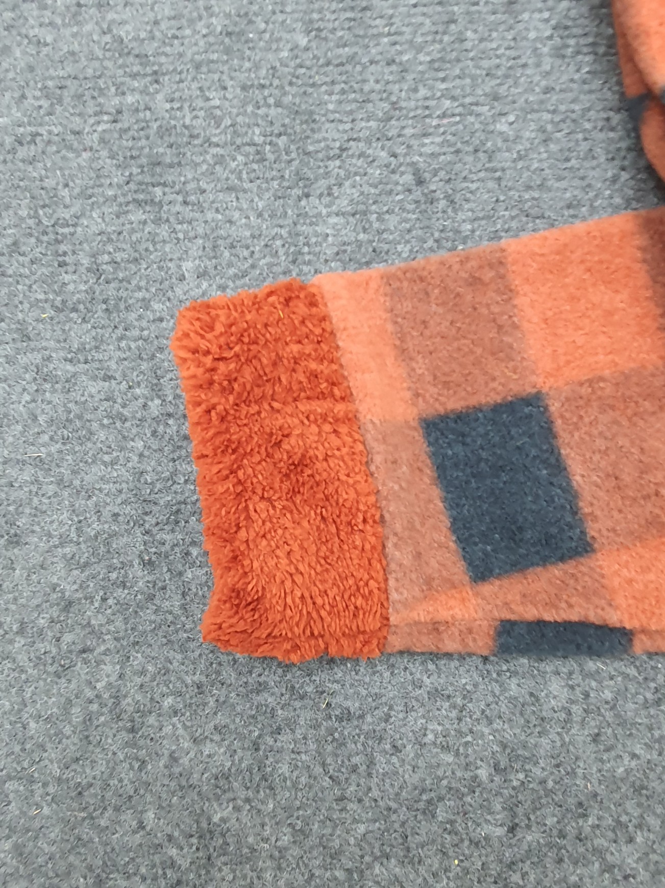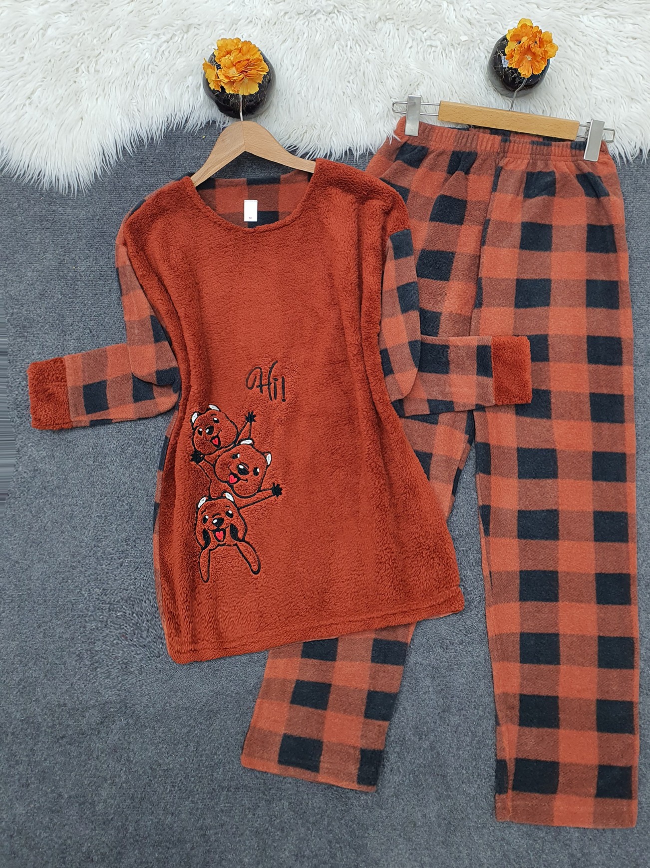 Polarlı Peluşlu Kare Desen Pijama Takım -Kiremit