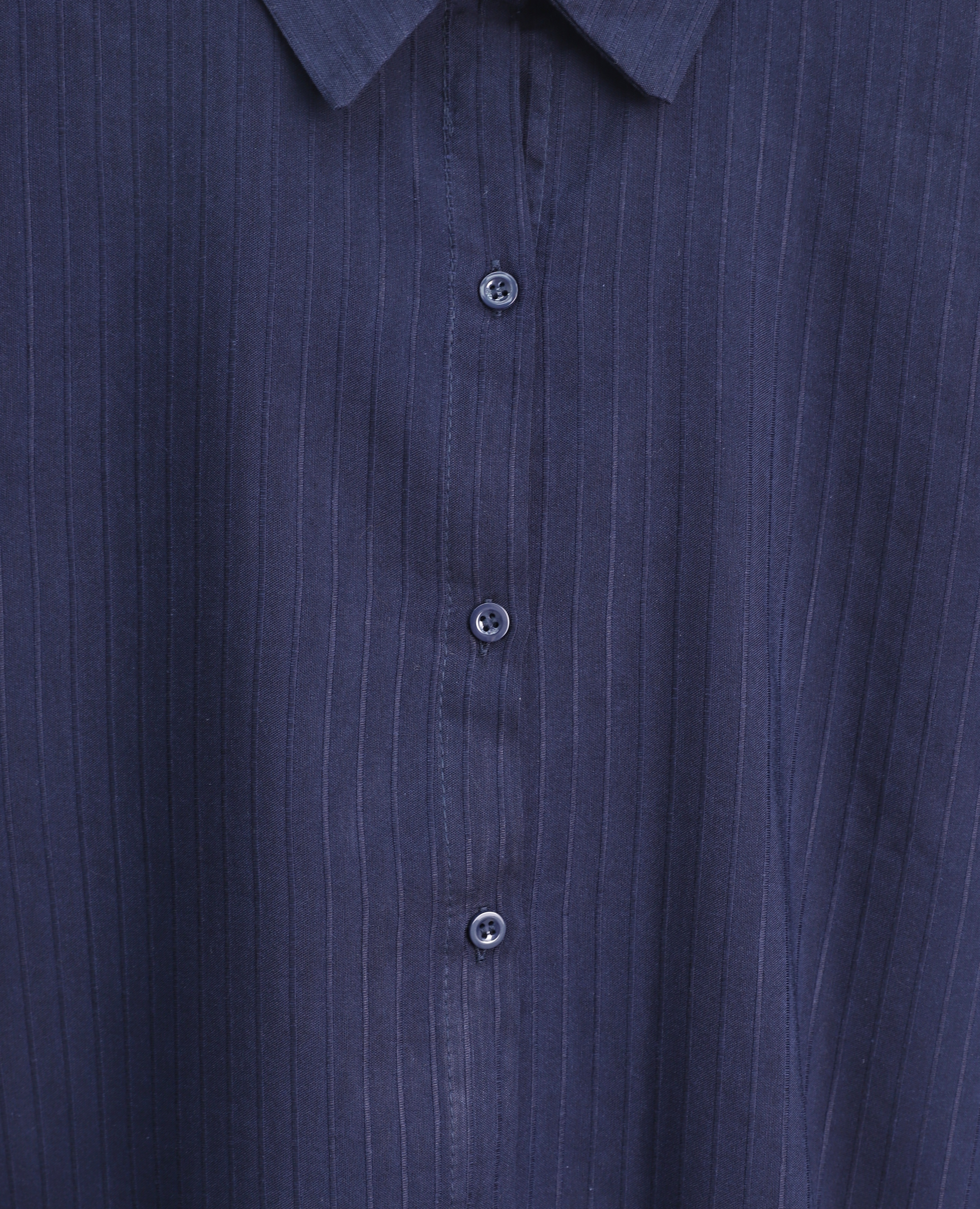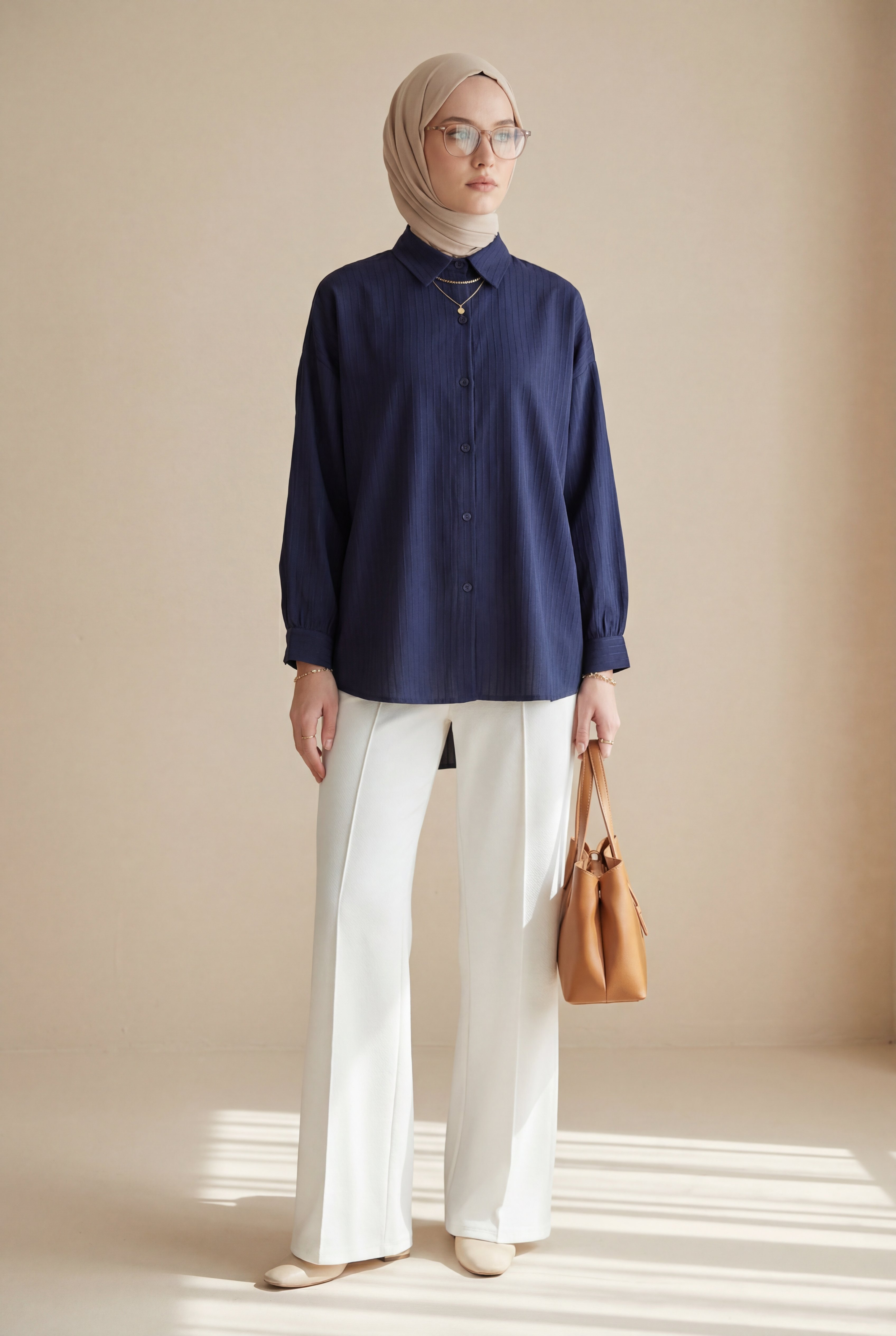 Rahat ve bol kalıbı sayesinde vücuda yapışmadan doğal bir duruş sergiler. “Çizgi desenli salaş gömlek”, “arkası uzun düğmeli gömlek”, “rahat kadın gömlek modelleri” gibi adlandırılabilir.