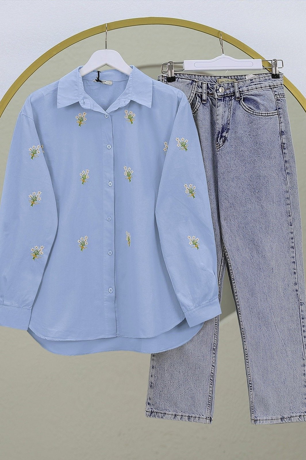 Buket Çiçek Detaylı Arkası Uzun Gömlek
