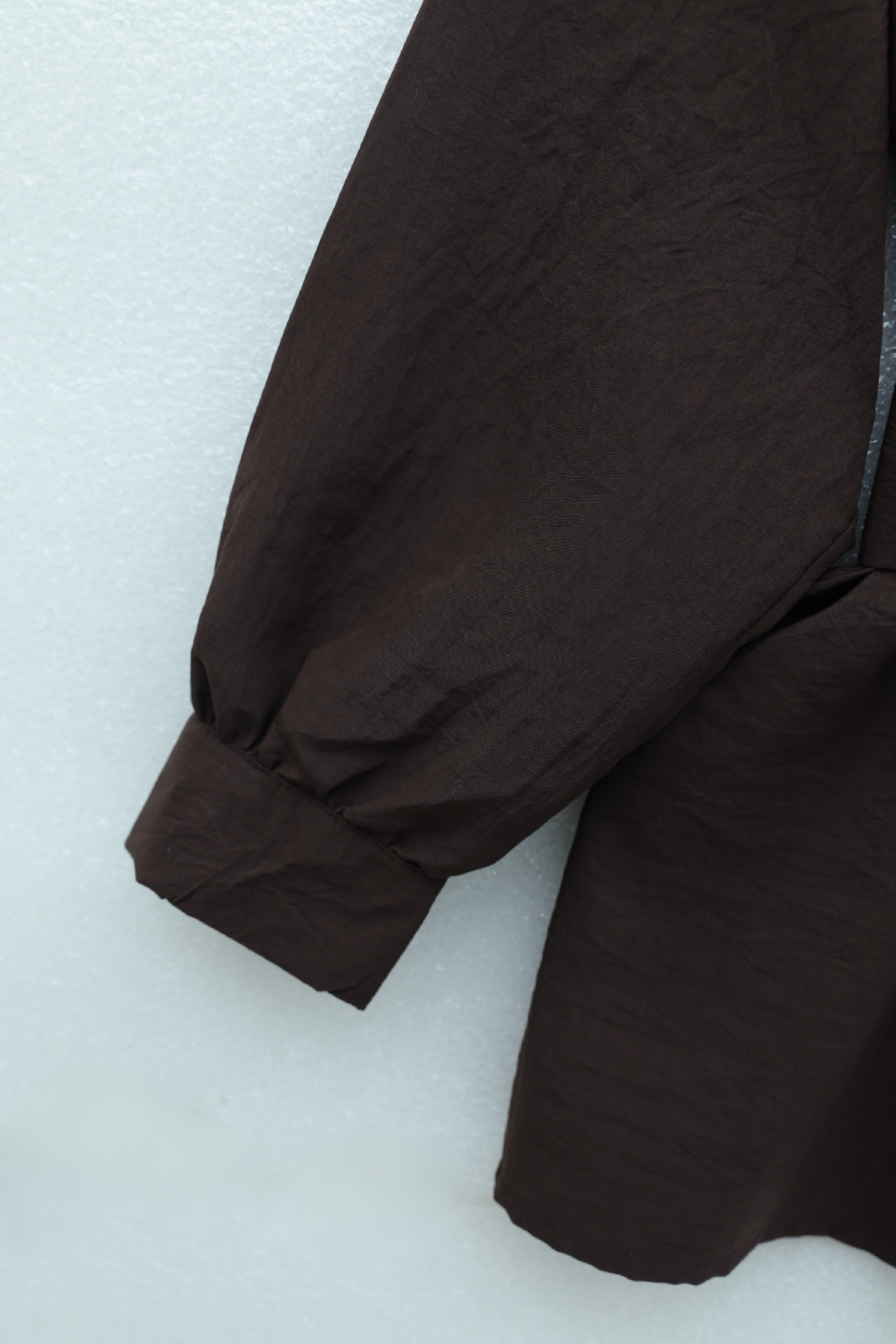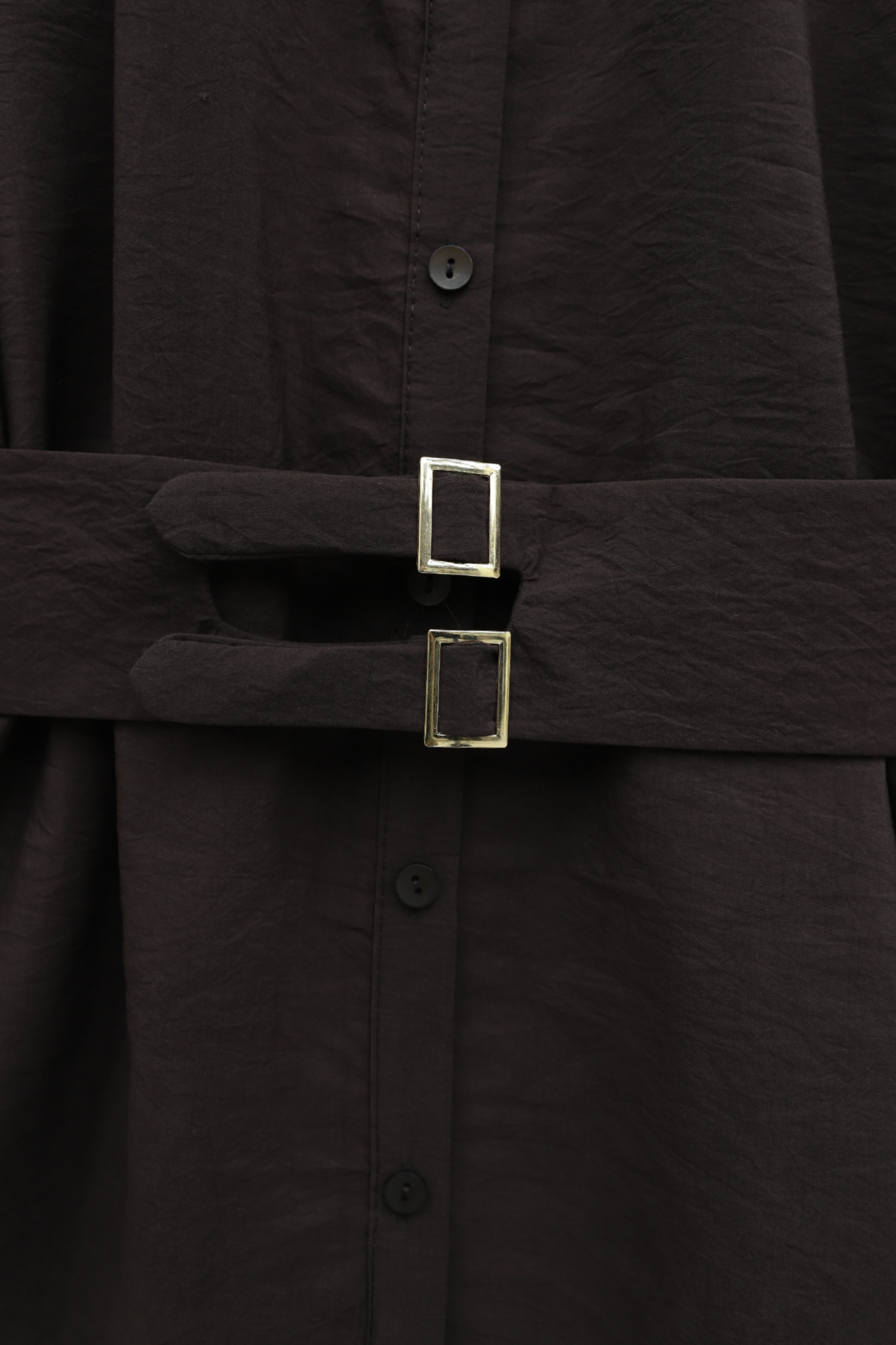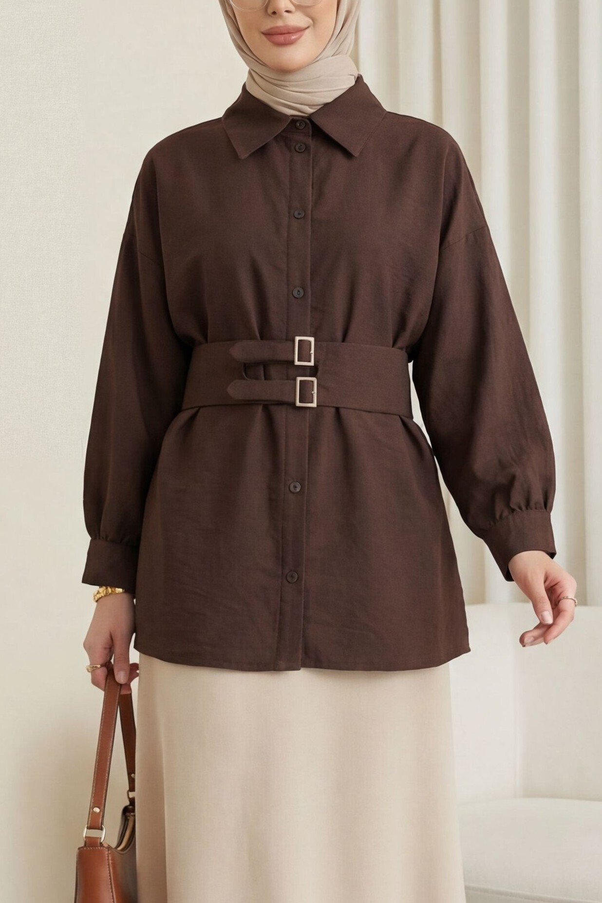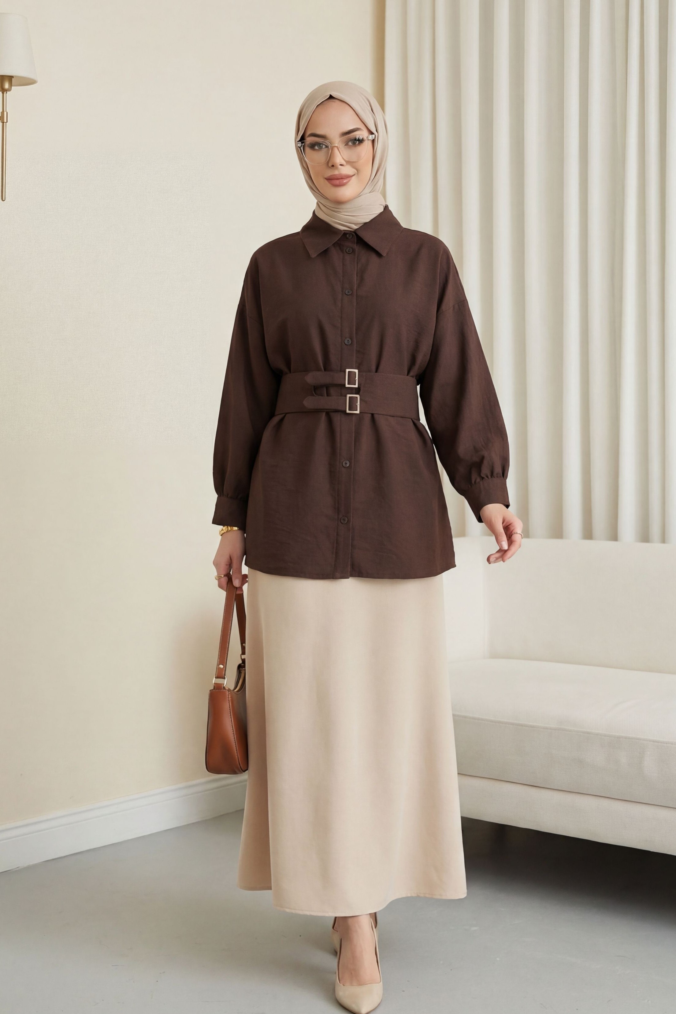 Çift Tokalı Lastikli Kemerli Önü Düğmeli Cupra Gömlek -K. Kahve