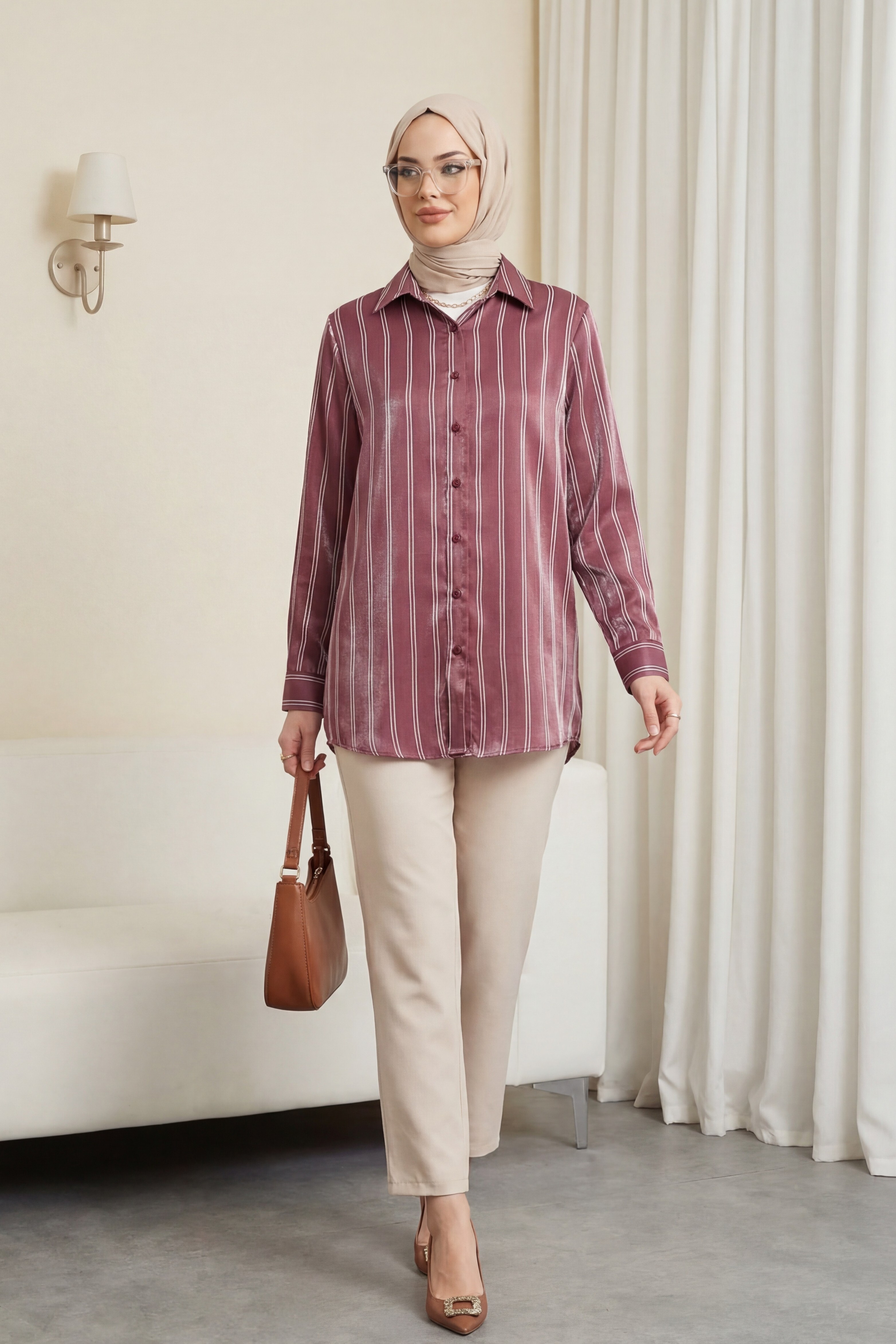 Çizgili Janjanlı Gömlek, modern ve şık bir görünüm arayanlar için mükemmel bir seçenektir. Çizgili deseni ve janjan detaylarıyla enerjik bir stil sunar. Hem gündüz hem de akşam kombinleri için ideal olan bu gömlek, tarzınızı yansıtarak dikkatleri üzerinize çeker.