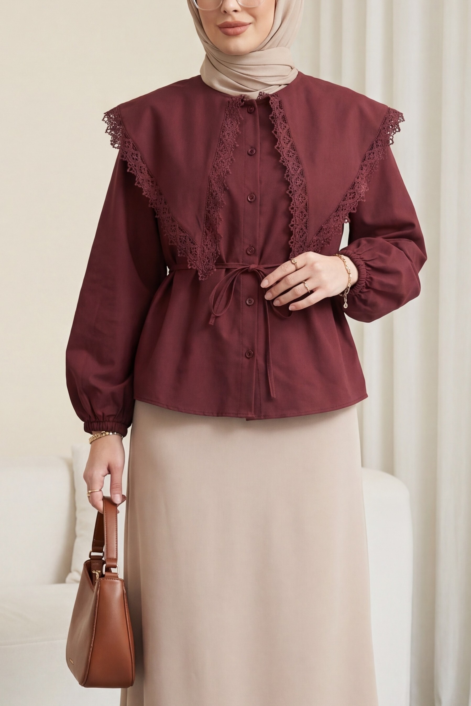 “dantelli poplin gömlek”, “bağcıklı kadın gömlek”, “geniş yakalı şık gömlek”, “romantik gömlek modeli” gibi adlandırılabilir.