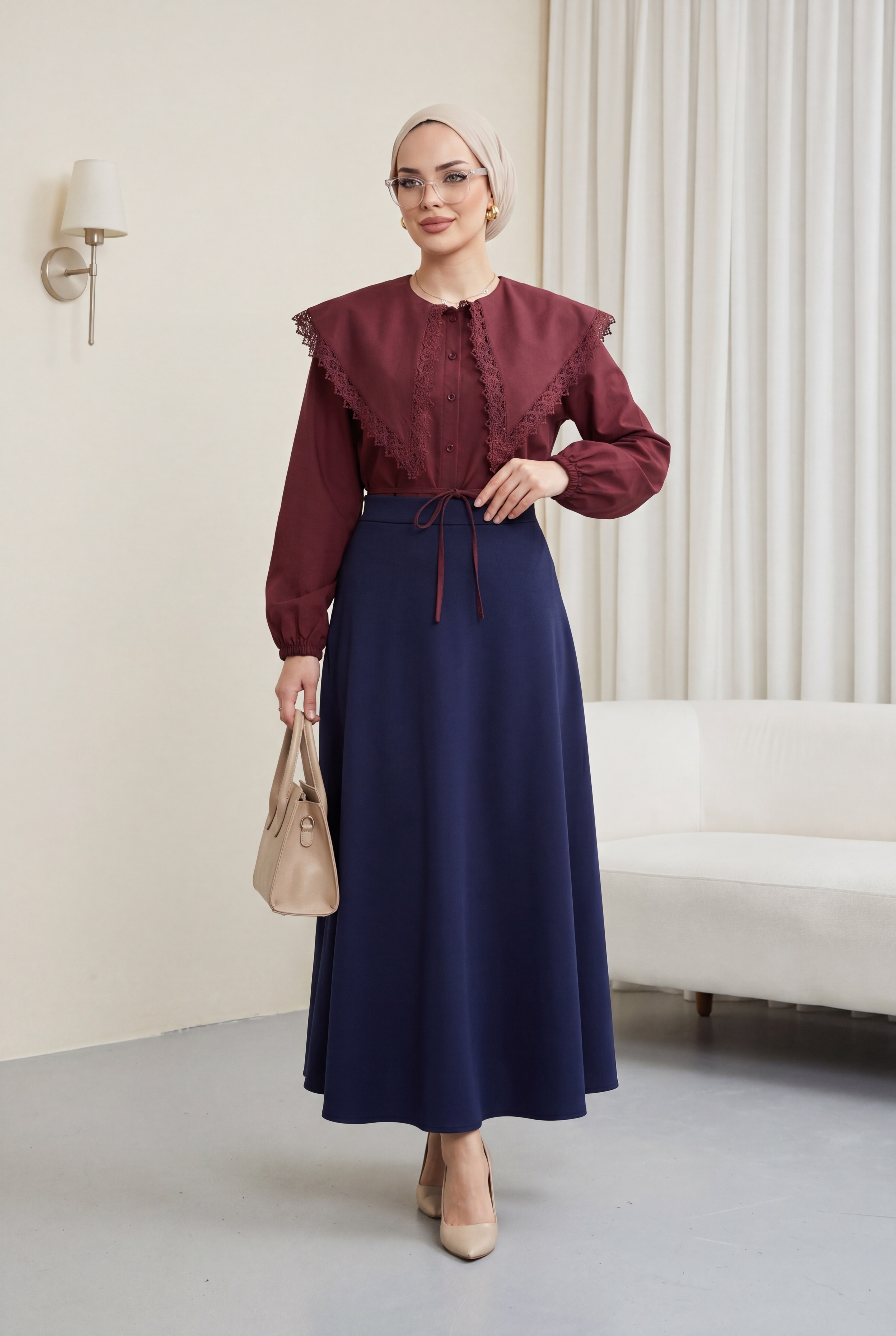Dantelli Geniş Yakalı Bağcıklı Kolu Lastikli Poplin Gömlek, zarif ve romantik bir stil sunar. Geniş yaka ve dantel detayları feminen bir görünüm kazandırırken, bağcıklı tasarımı şık bir dokunuş katar. Kolu lastikli formu konfor sağlar. Poplin kumaşı hafif ve nefes alabilendir.
