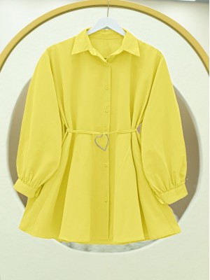 Parça Kumaşlı Düğmeli Poplin Tunik -Sarı