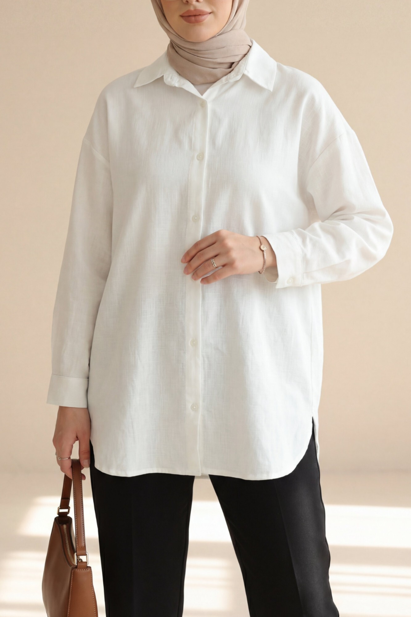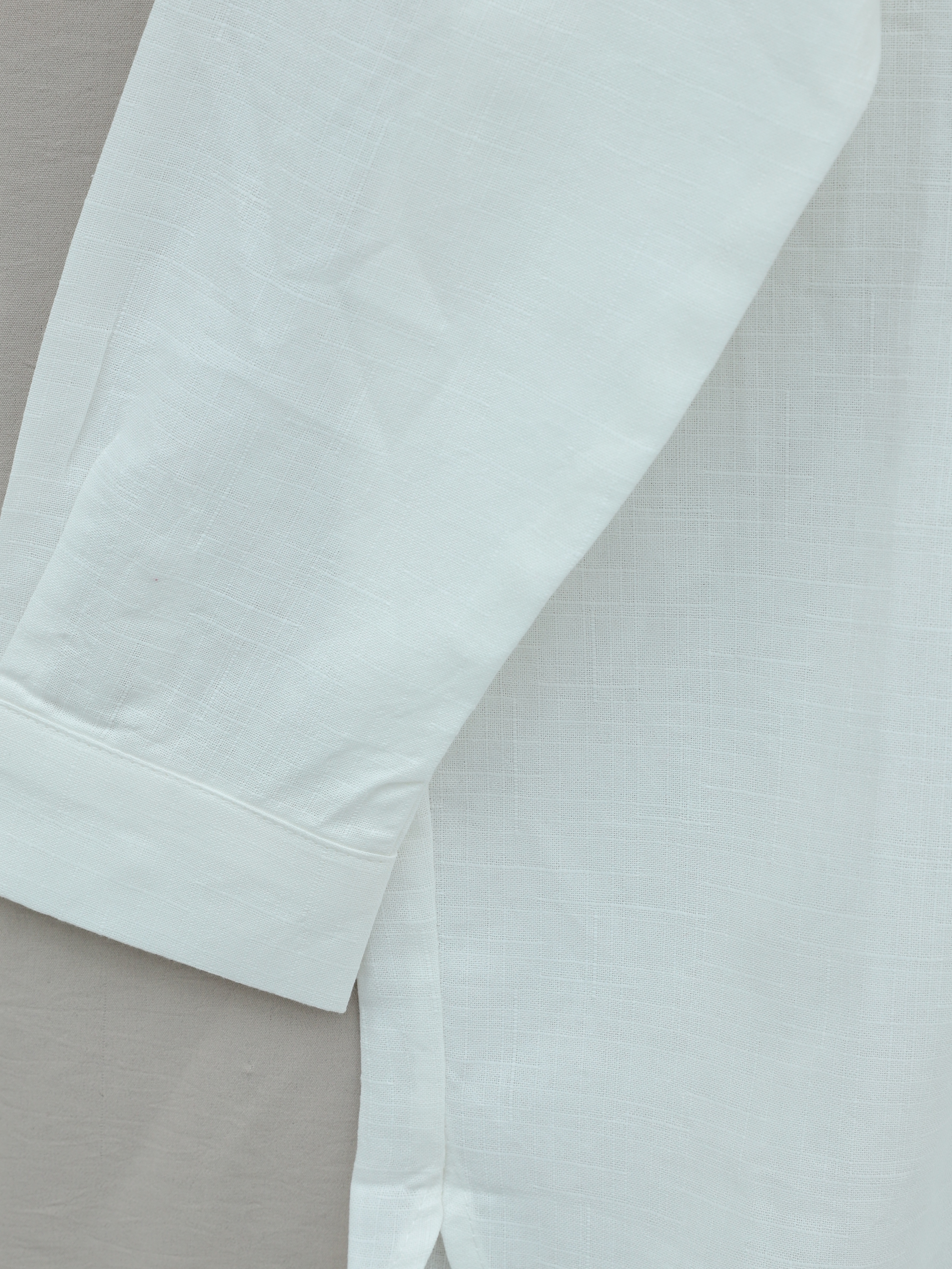 Düğmeli Keten Gömlek -Beyaz