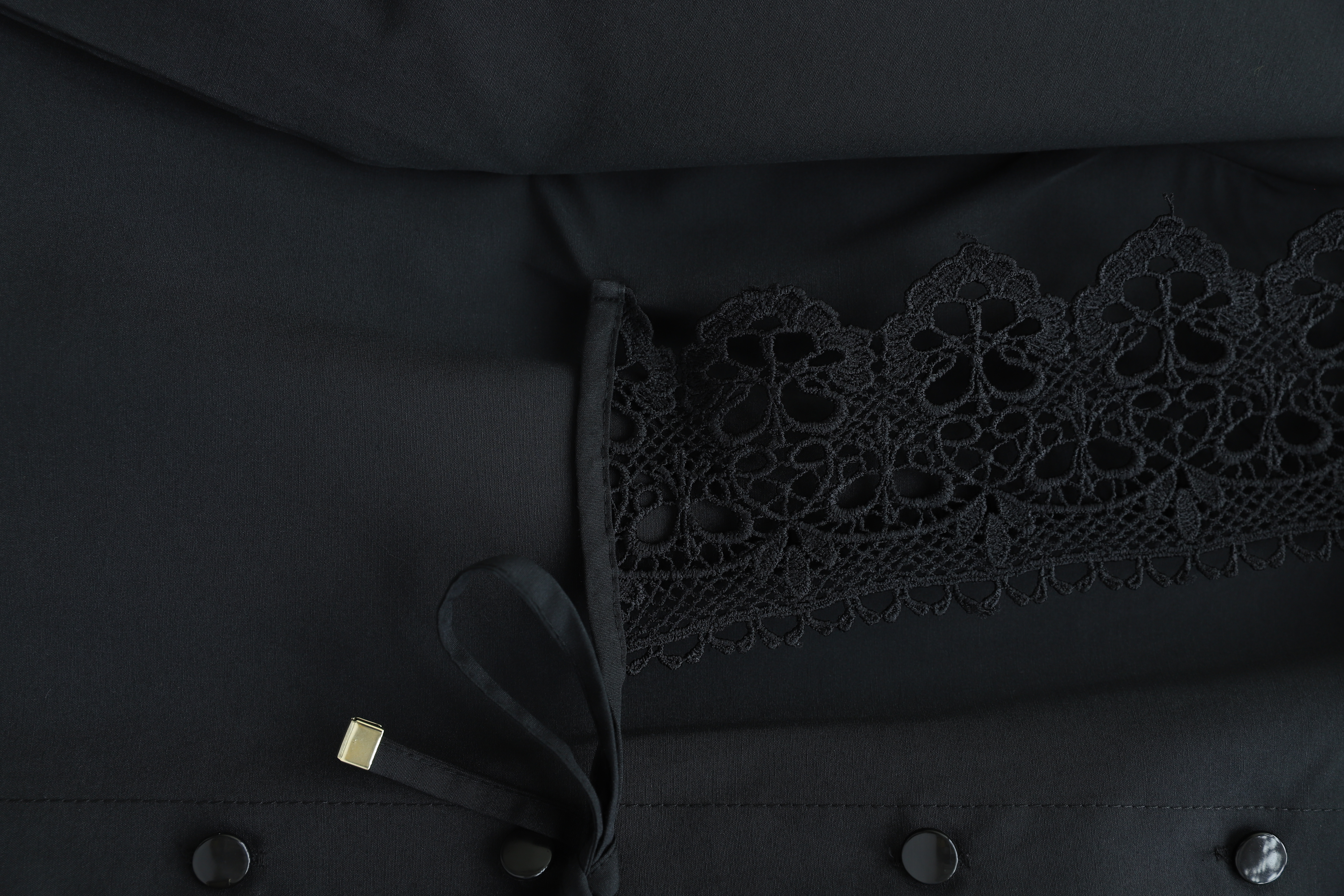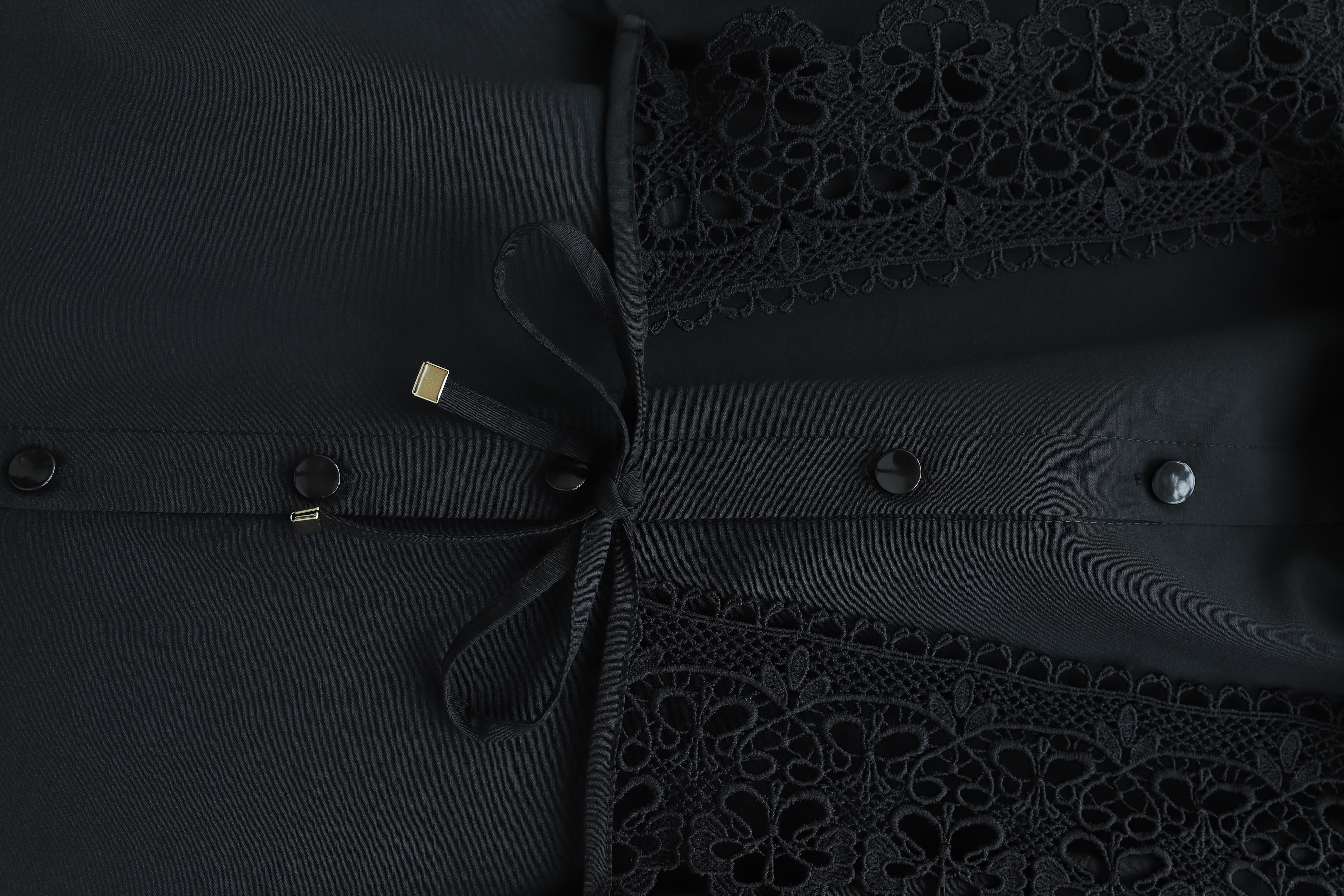 Önü Dantelli Bağlama Detaylı Düğmeli Poplin Gömlek -Siyah