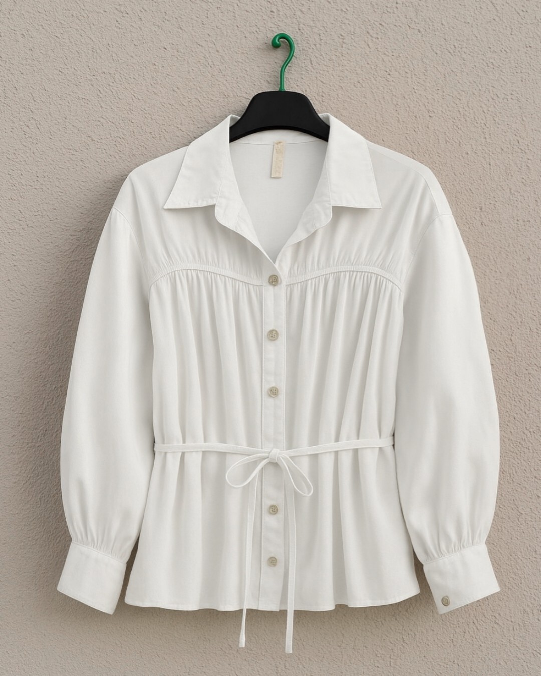 Robadan büzgülü, beli bağcıklı gömlek; zarif kesimi ve ayarlanabilir bel detayıyla şıklığı konforla buluşturur. Günlük ve ofis stiline uyum sağlayan modern bir parçadır.