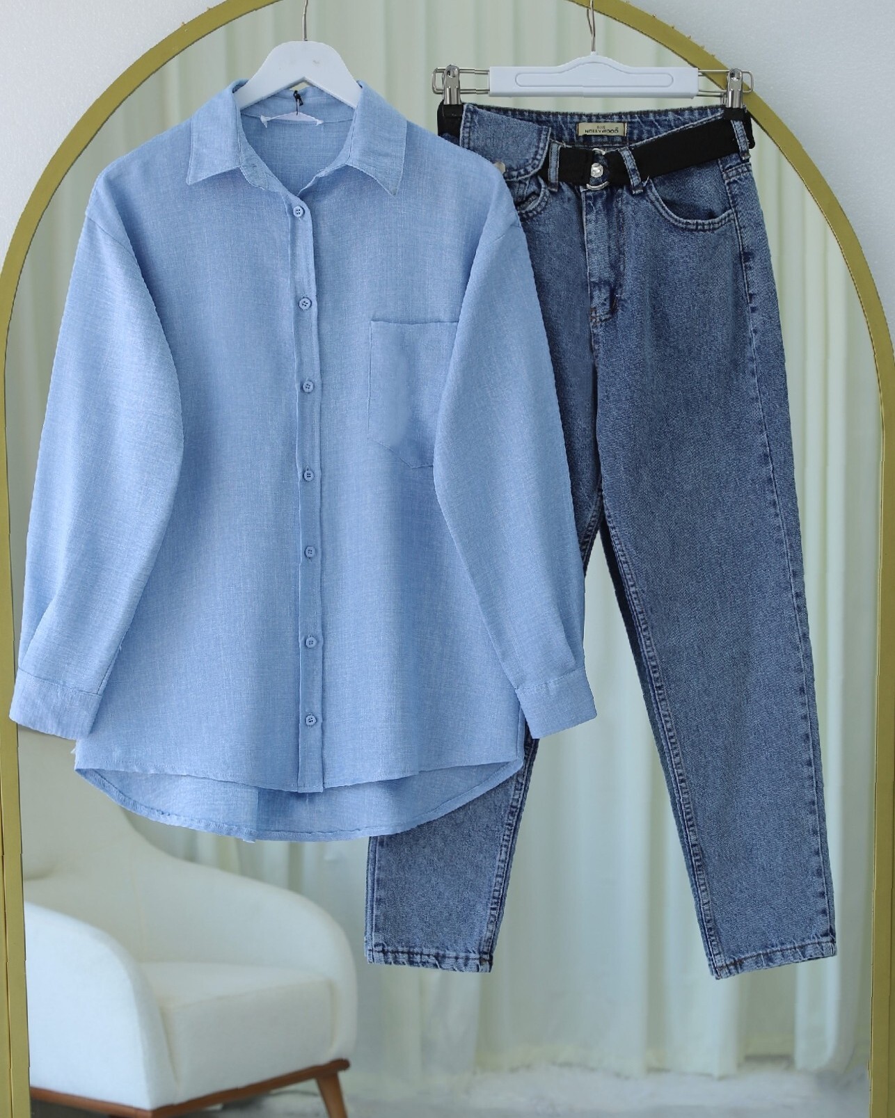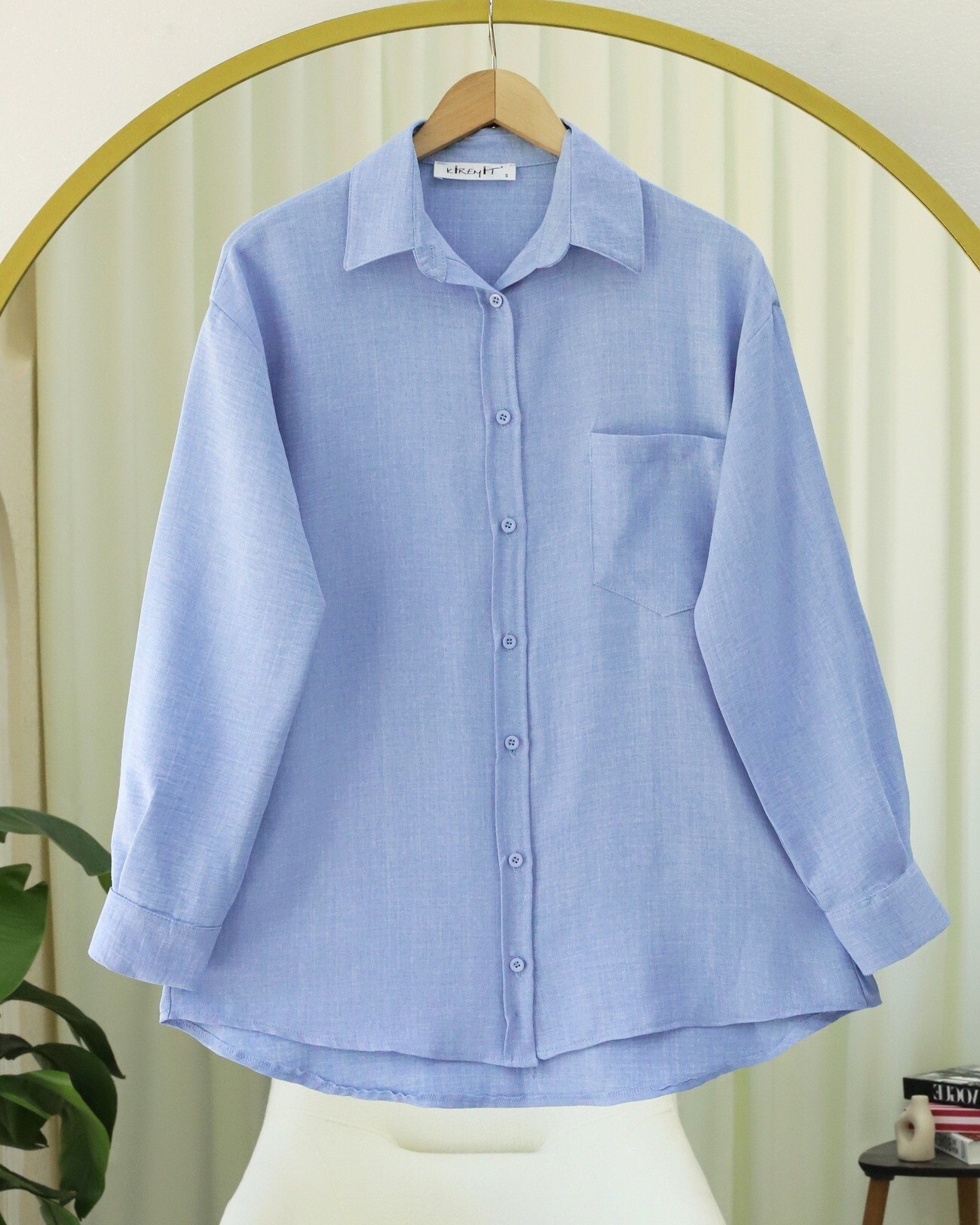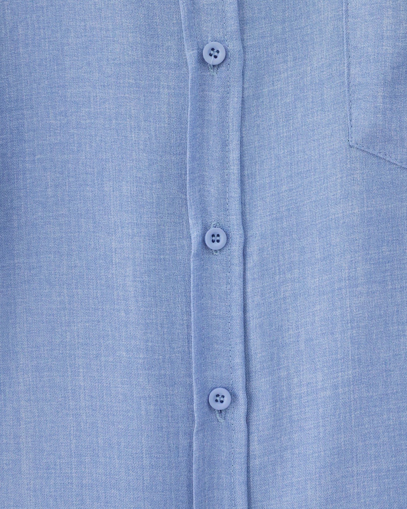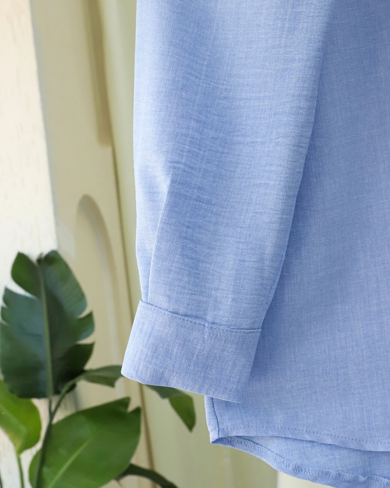 Tek Cepli Düğmeli Keten Gömlek -Bebe Mavi