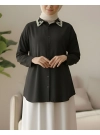 Tesettür giyim modasında, gömlekler rahat kesimleri ve zarif detaylarıyla