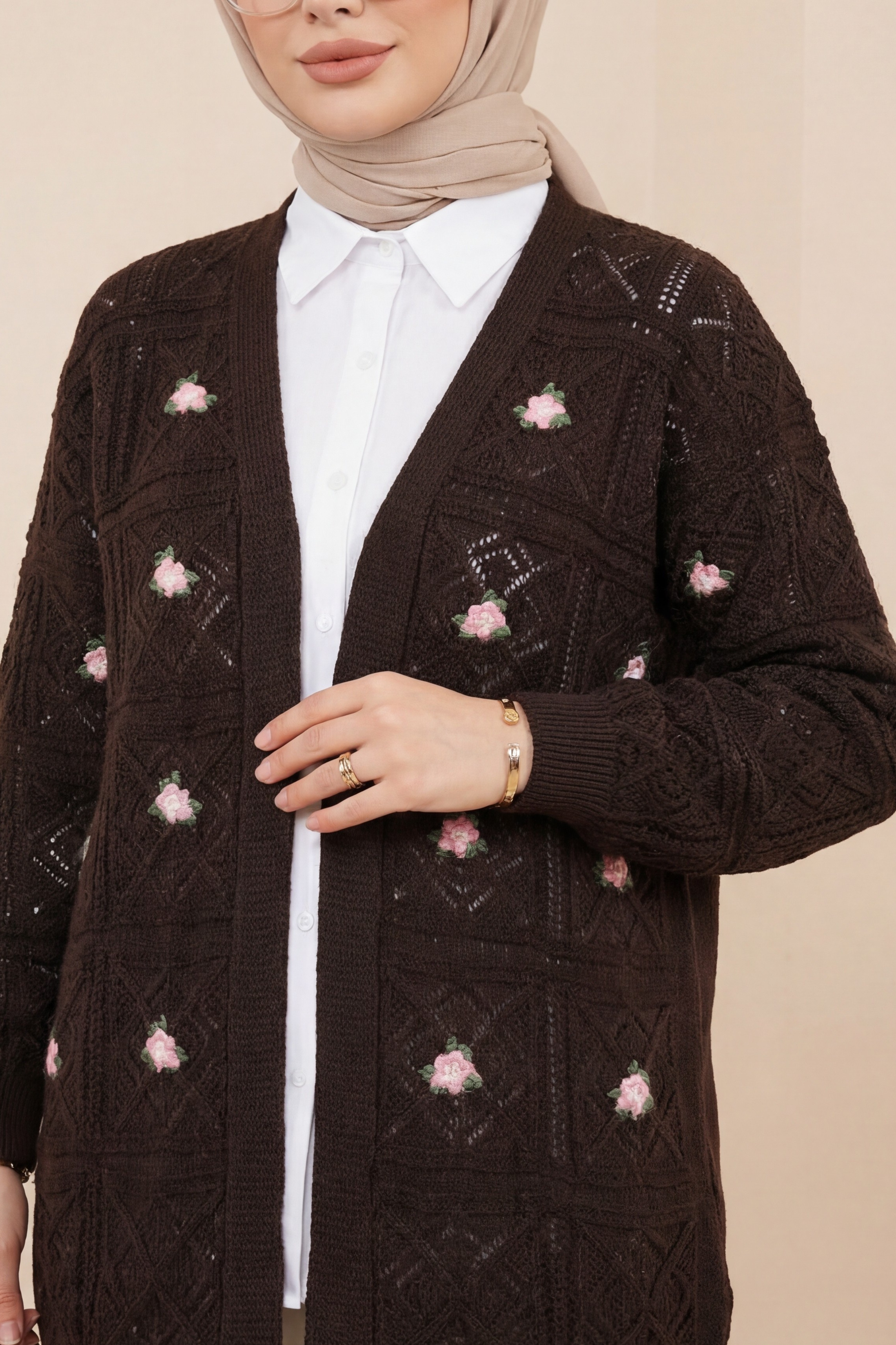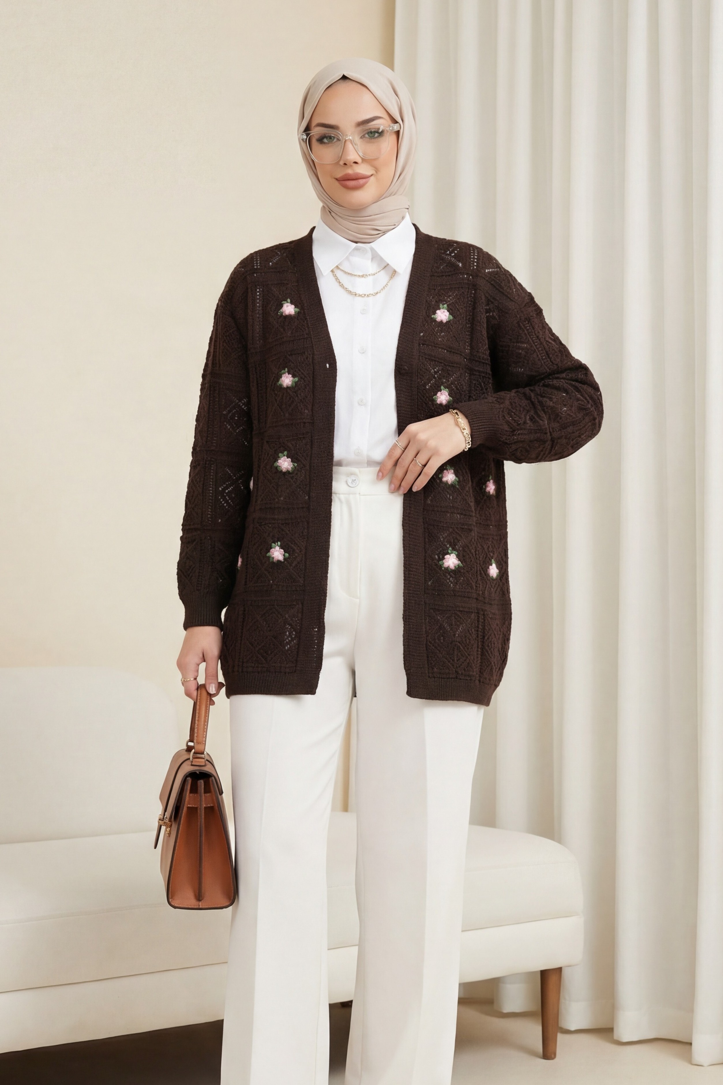 Ajurlu, çiçek nakışlı triko hırka modelimiz yeni sezonun en çok sevilen modelleri arasında yer almaktadır.
