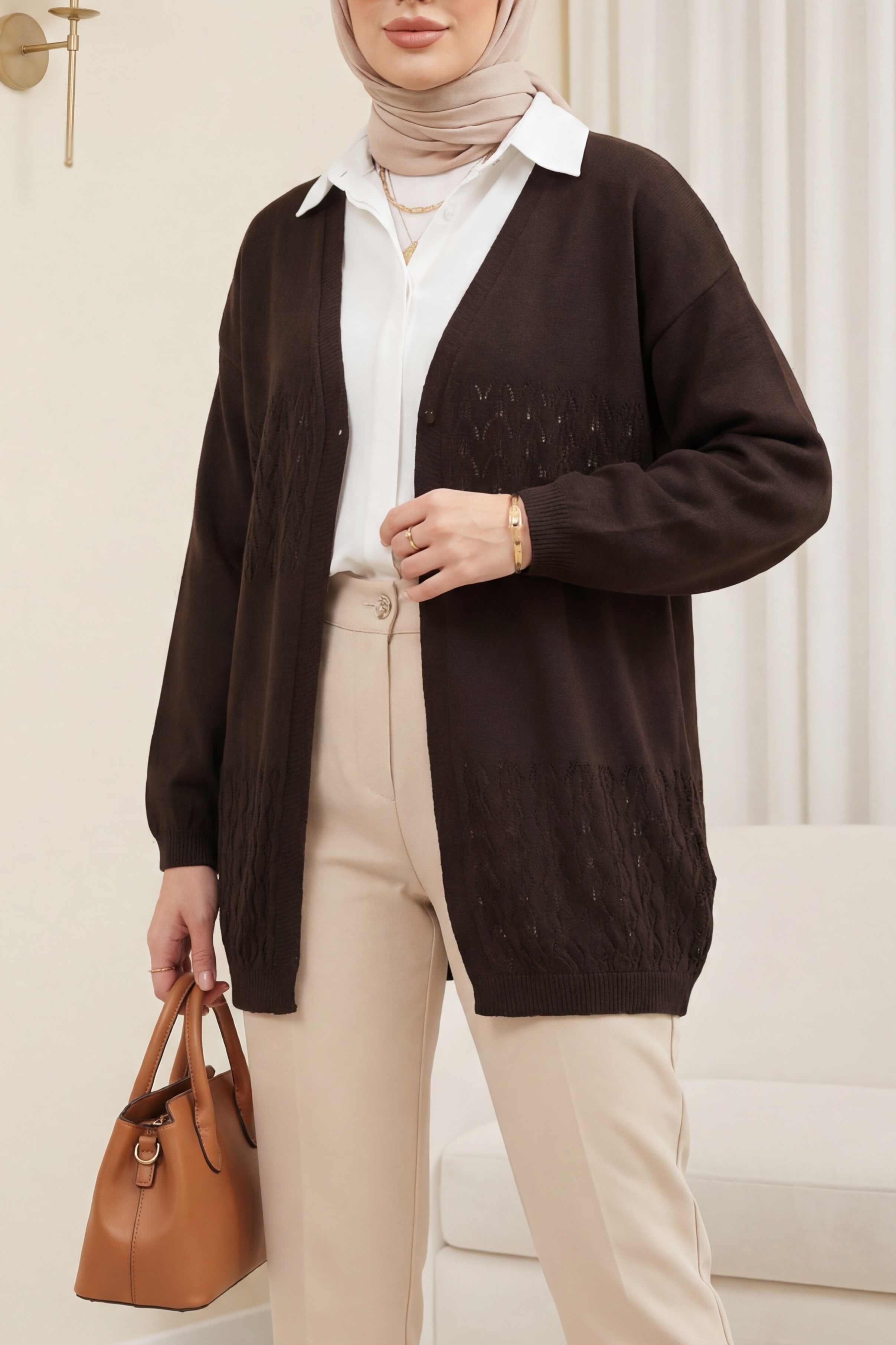 Araboy Ajurlu Triko Hırka -K. Kahve