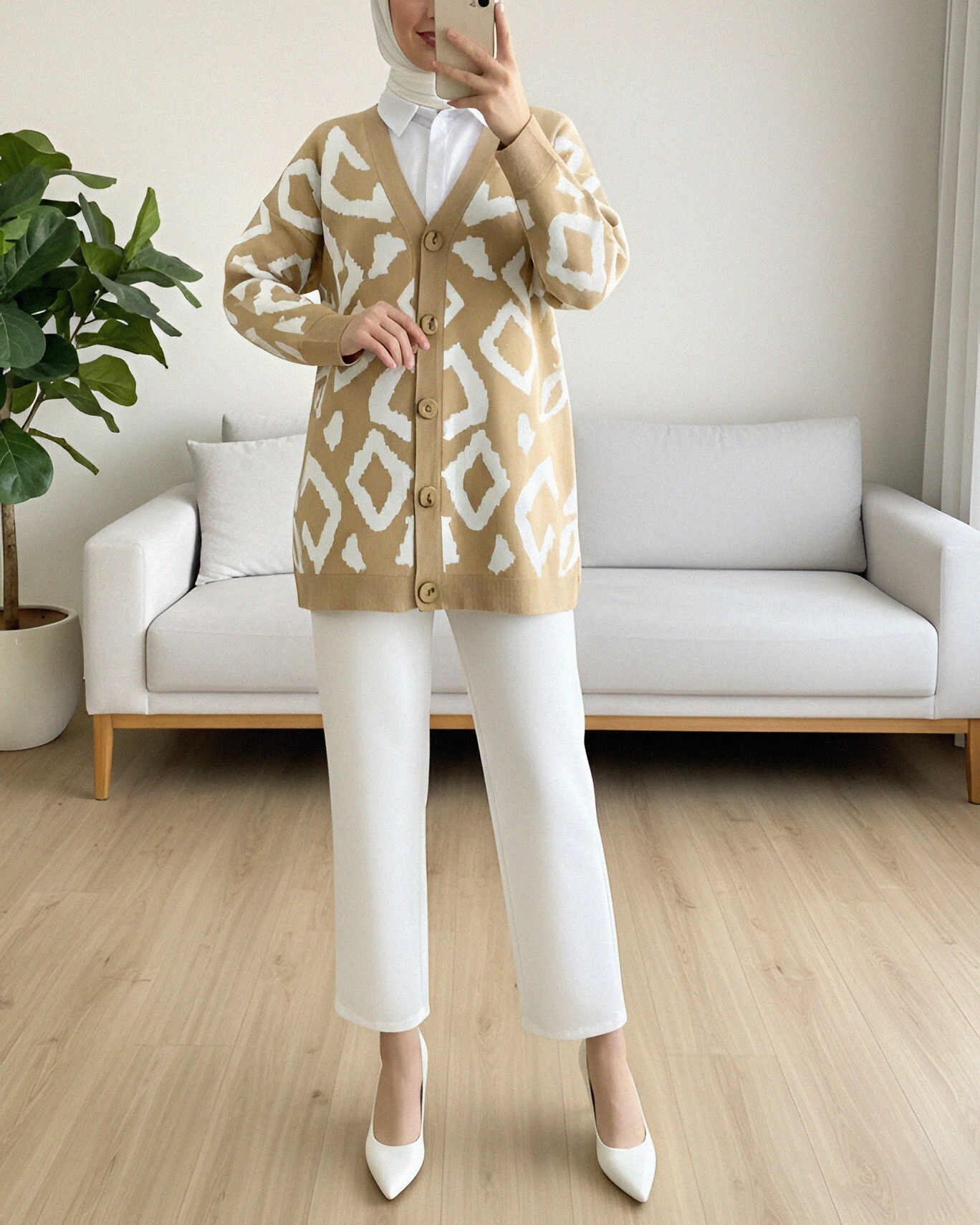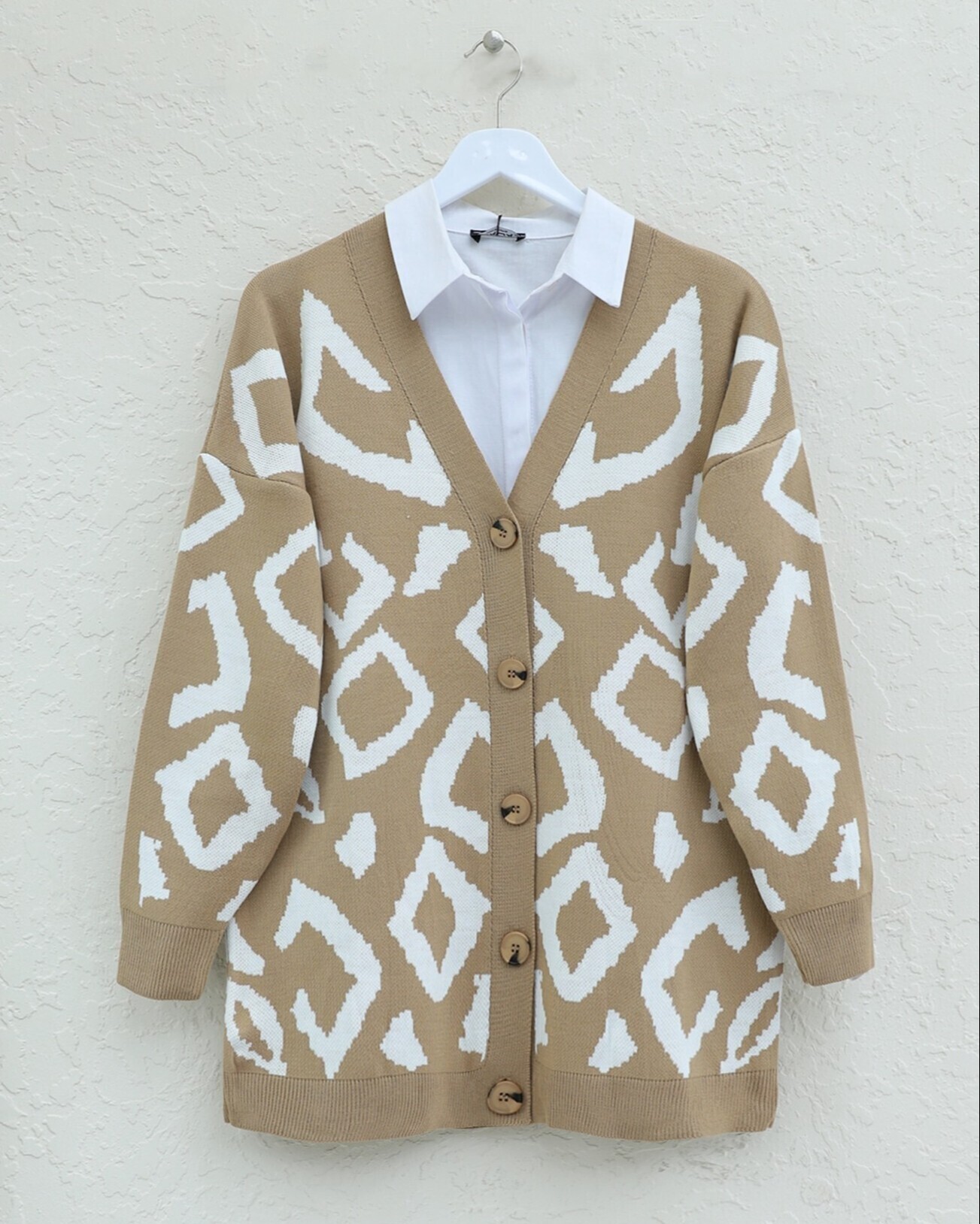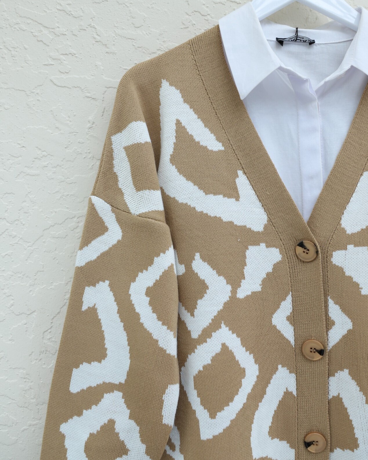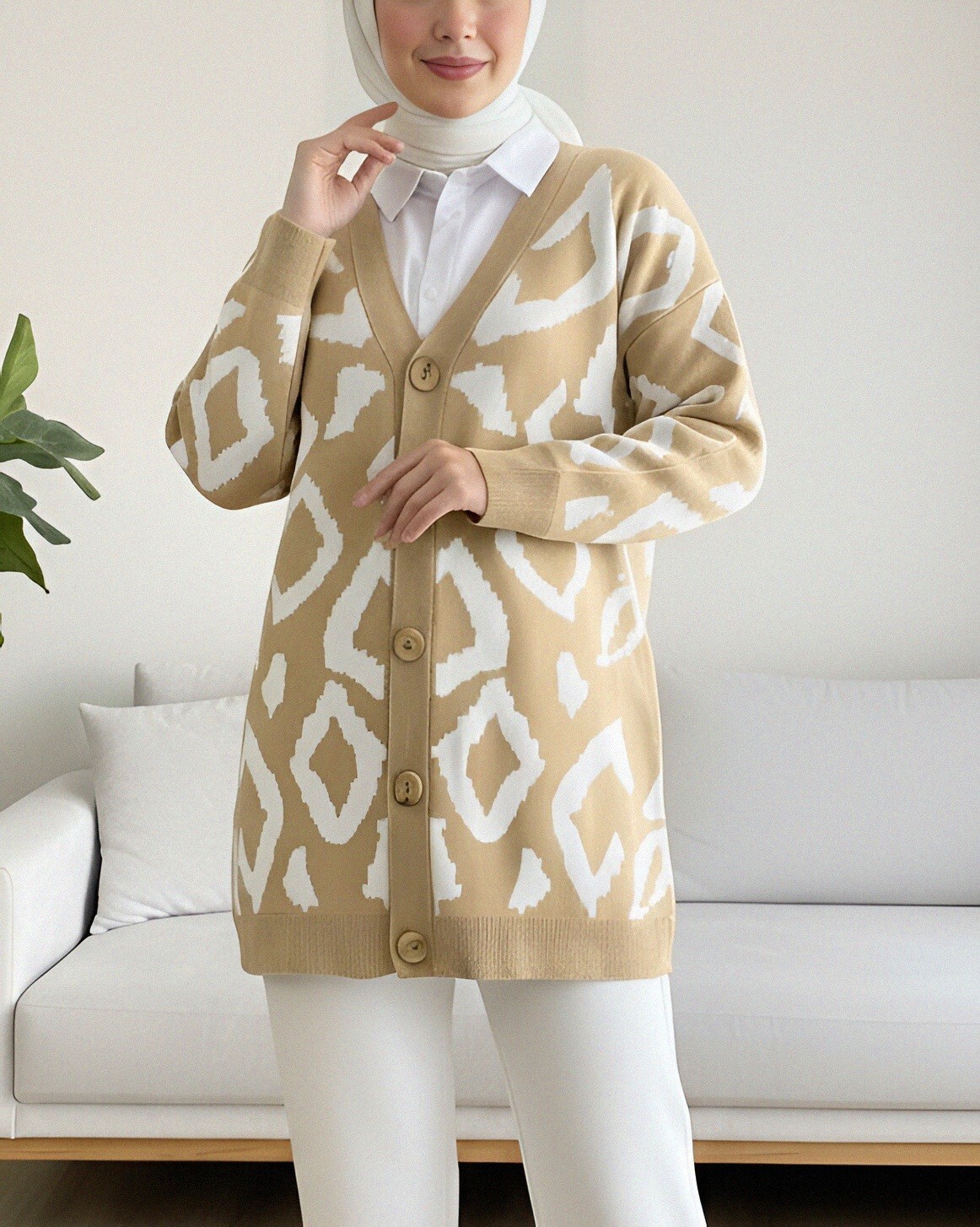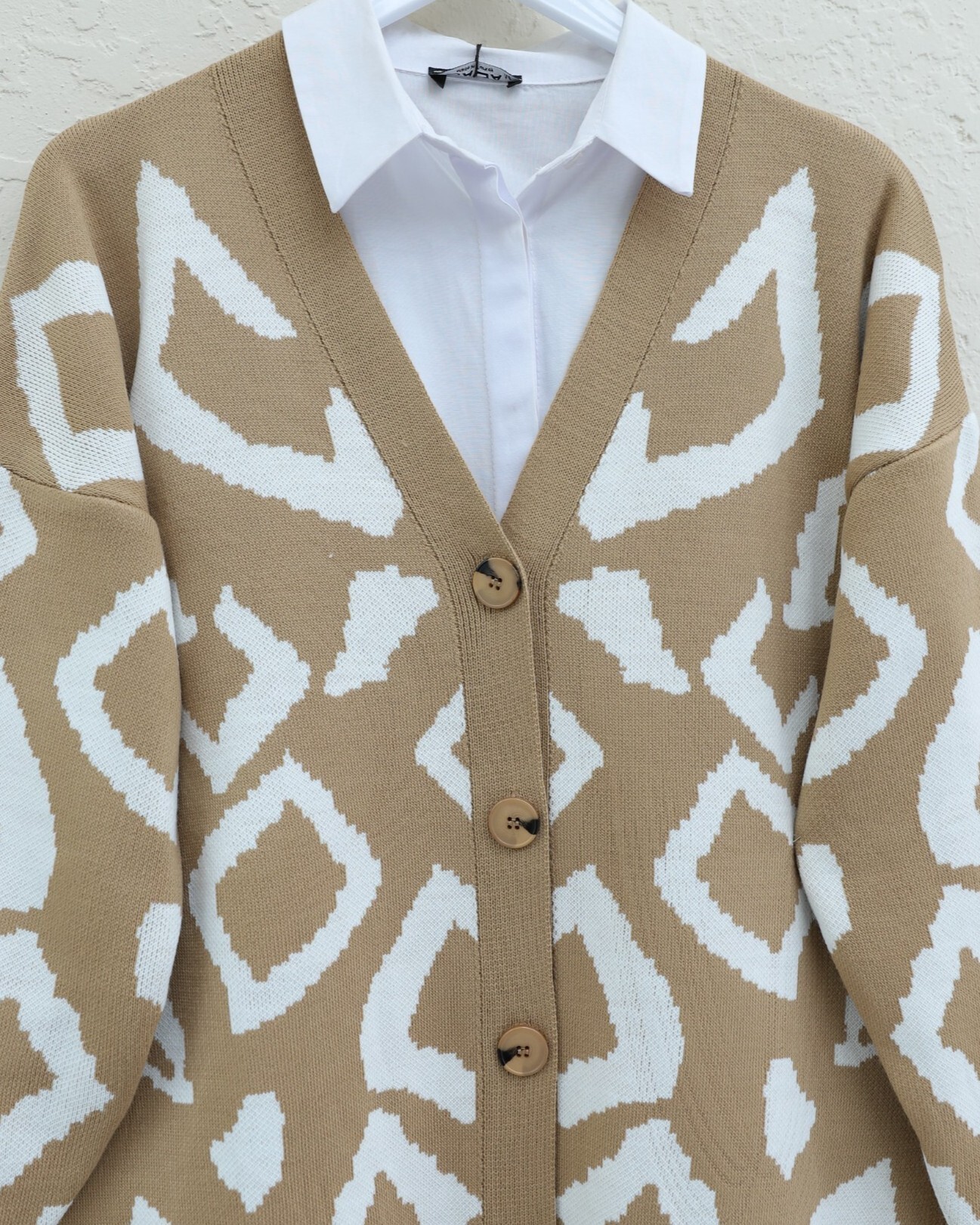 Düğmeli Desenli V Yaka Triko Hırka – Şıklık ve Sıcaklık Bir Arada