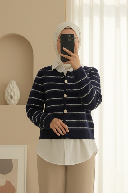 Düğmeli Gömlek Detaylı Triko Hırka, şıklığı ve zarafeti modern bir dokunuşla birleştiriyor. Gömlek yakası ve düğme detayları, hırkaya sofistike bir hava katarken, triko kumaşı ise sıcaklık ve rahatlık sağlar. Hem iş hayatında hem de günlük kombinlerde rahatlıkla kullanabileceğiniz bu hırka, stilinize zarif bir dokunuş ekler. Şık ve rahat bir parça arayanlar için mükemmel bir tercih.