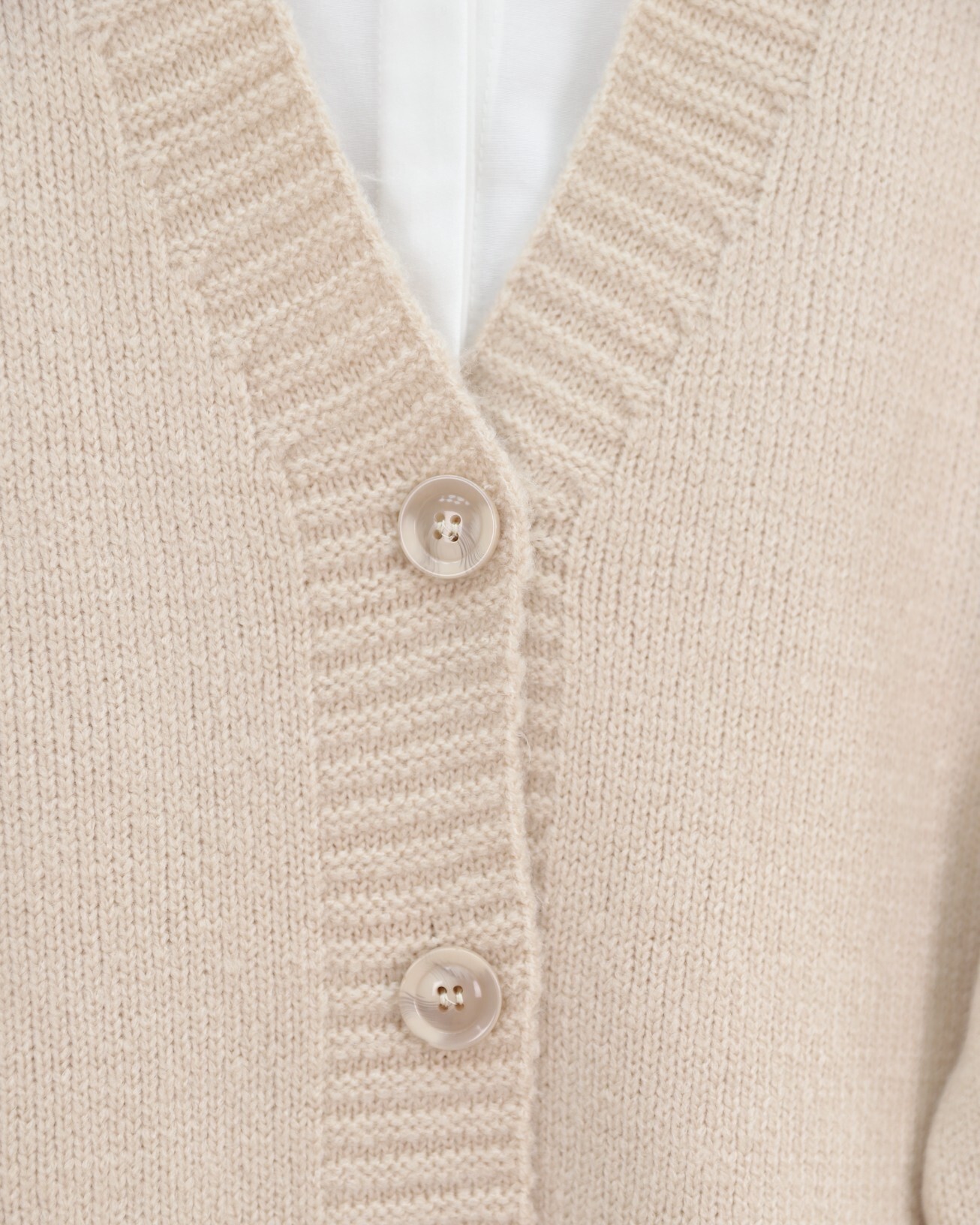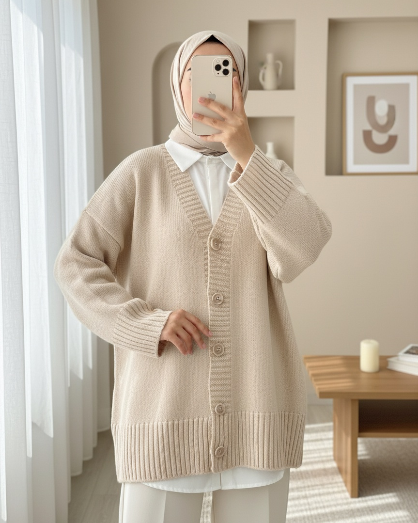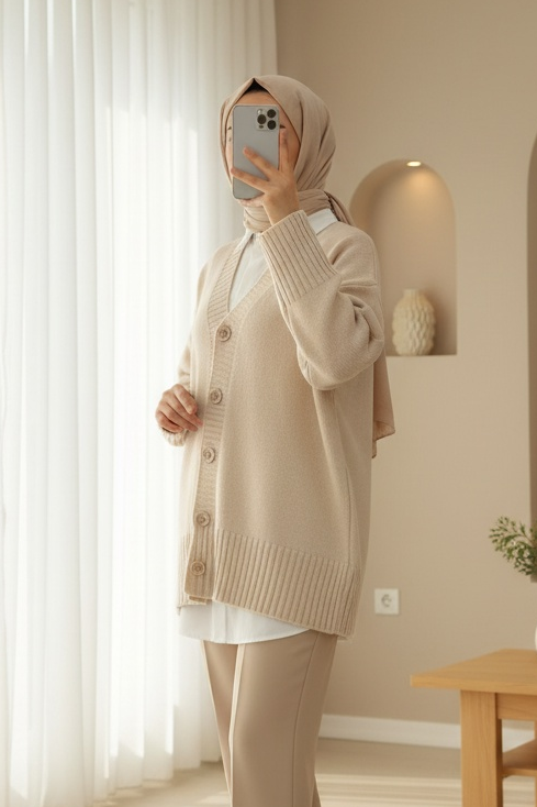 Düğmeli Oversize Triko Hırka, rahat ve şık bir seçenek sunar. Geniş kesimi ve düğme detaylarıyla modern bir görünüm sağlar. Hem günlük kullanımda hem de soğuk havalarda sıcak tutan bu hırka, şıklığı ve konforu bir arada sunar.