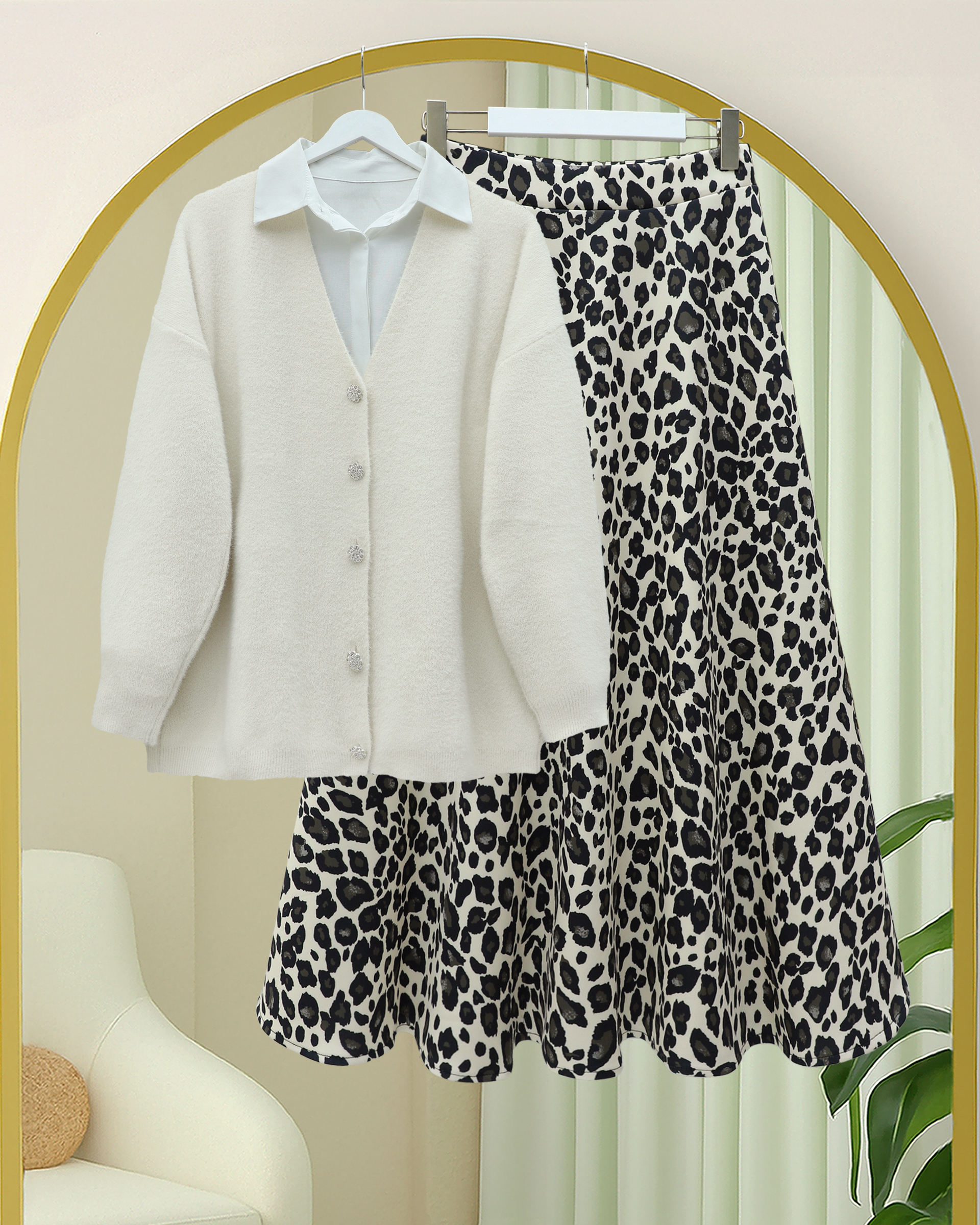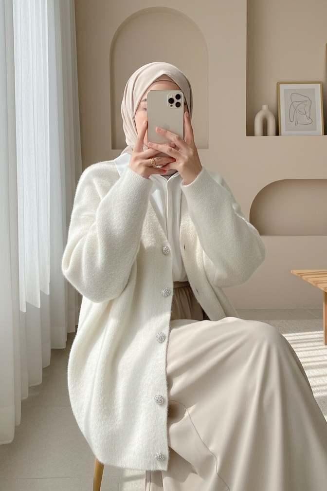 Not: Ürün içeriği hırkadan oluşmaktadır. (Bluz, pantolon, ayakkabı, çanta ve takılar dekor amaçlı kullanılmaktadır.)