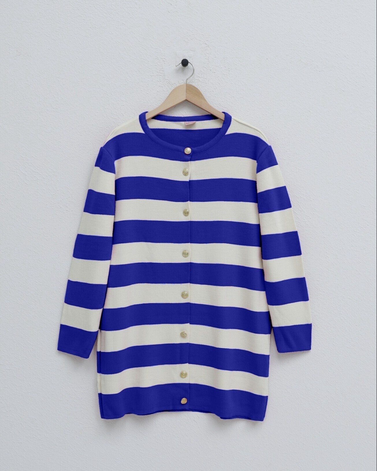Ringelli Metal Dügme Çelik Örgü Salaş Hırka -Saks