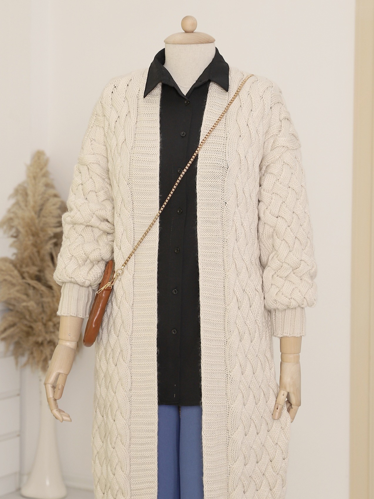 Not: Ürün içeriği hırkadan oluşmaktadır. (Ayakkabı, çanta ve takılar dekor amaçlı kullanılmaktadır.)