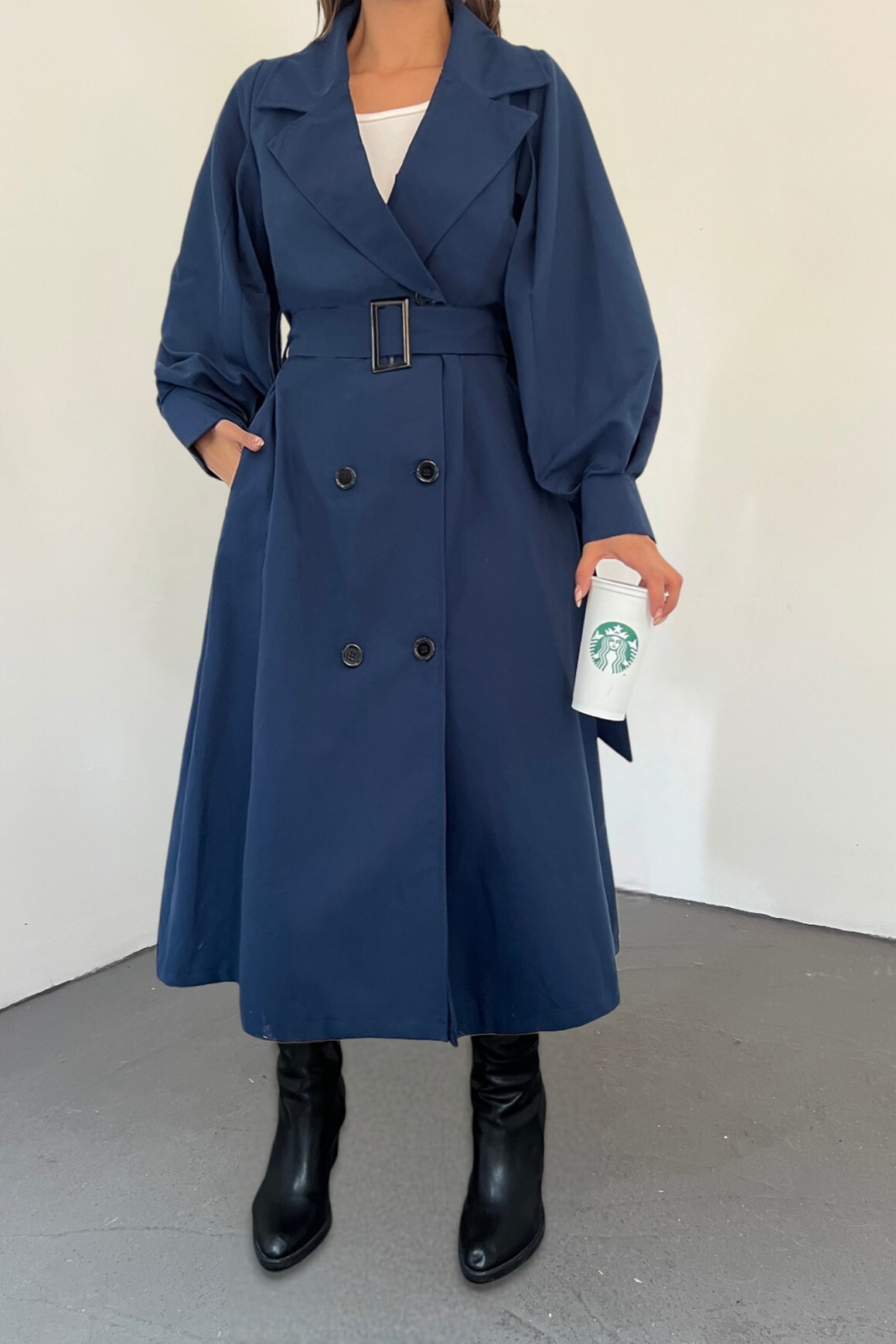 Şal yaka, önden düğmeli, 2 cepli, kemerli, astarsız, oversize trençkot modelimiz yeni sezonun en çok sevilen modelleri arasında yer almaktadır.